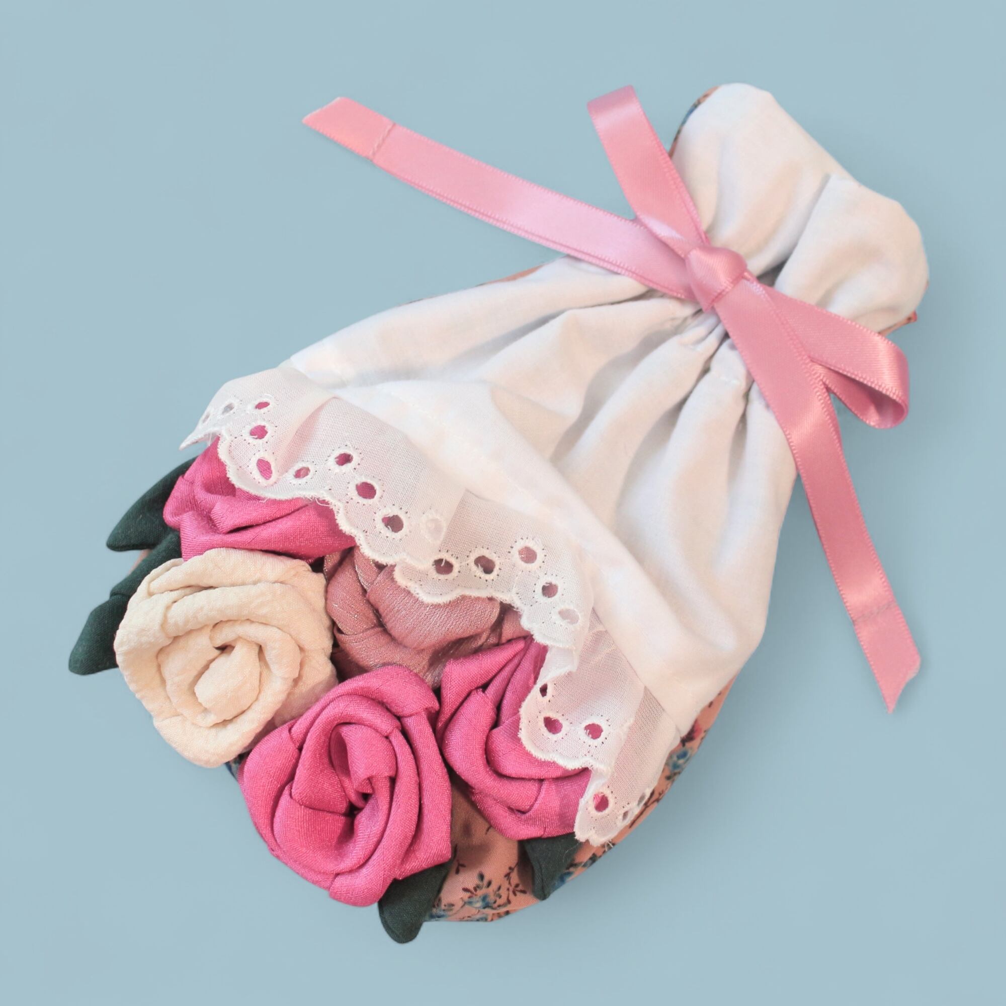 そんなハギレを集めて、世界でたったひとつのバラの花束にしました。