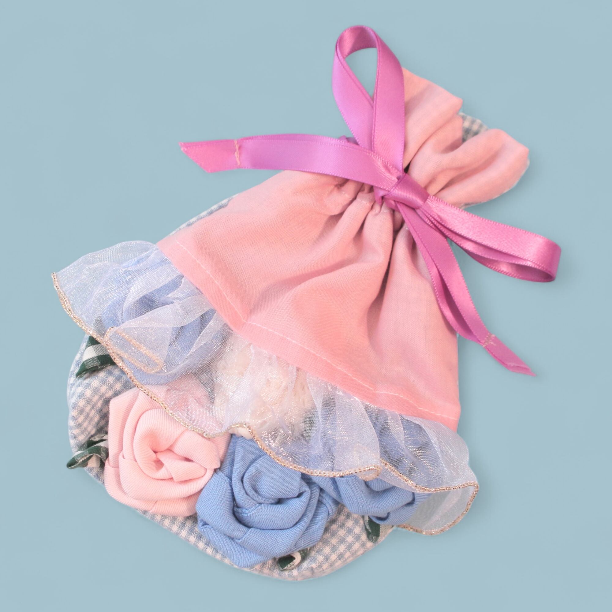バッグなどにつけて携えられる『たったひとつの花束』の巾着ポーチです。