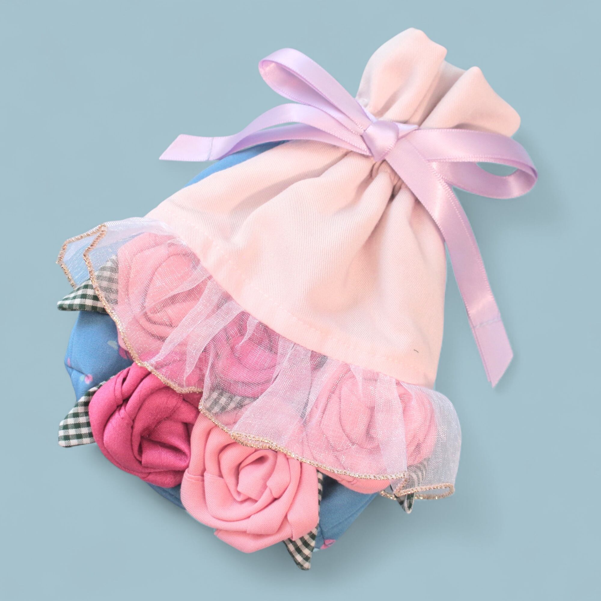 そんなハギレを集めて、世界でたったひとつのバラの花束にしました。