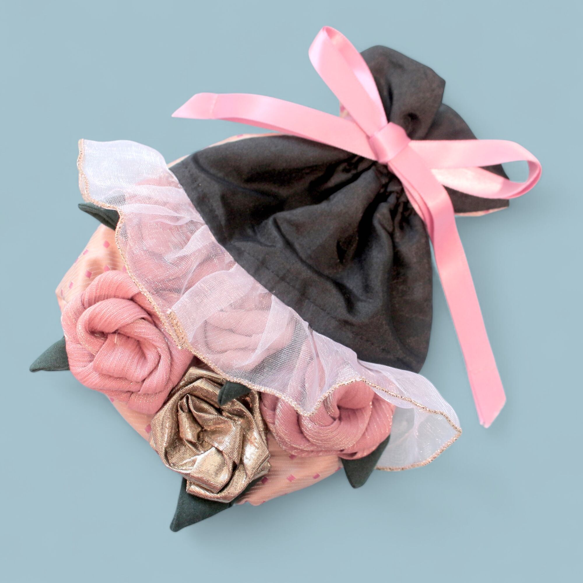 バッグなどにつけて携えられる『たったひとつの花束』の巾着ポーチです。
