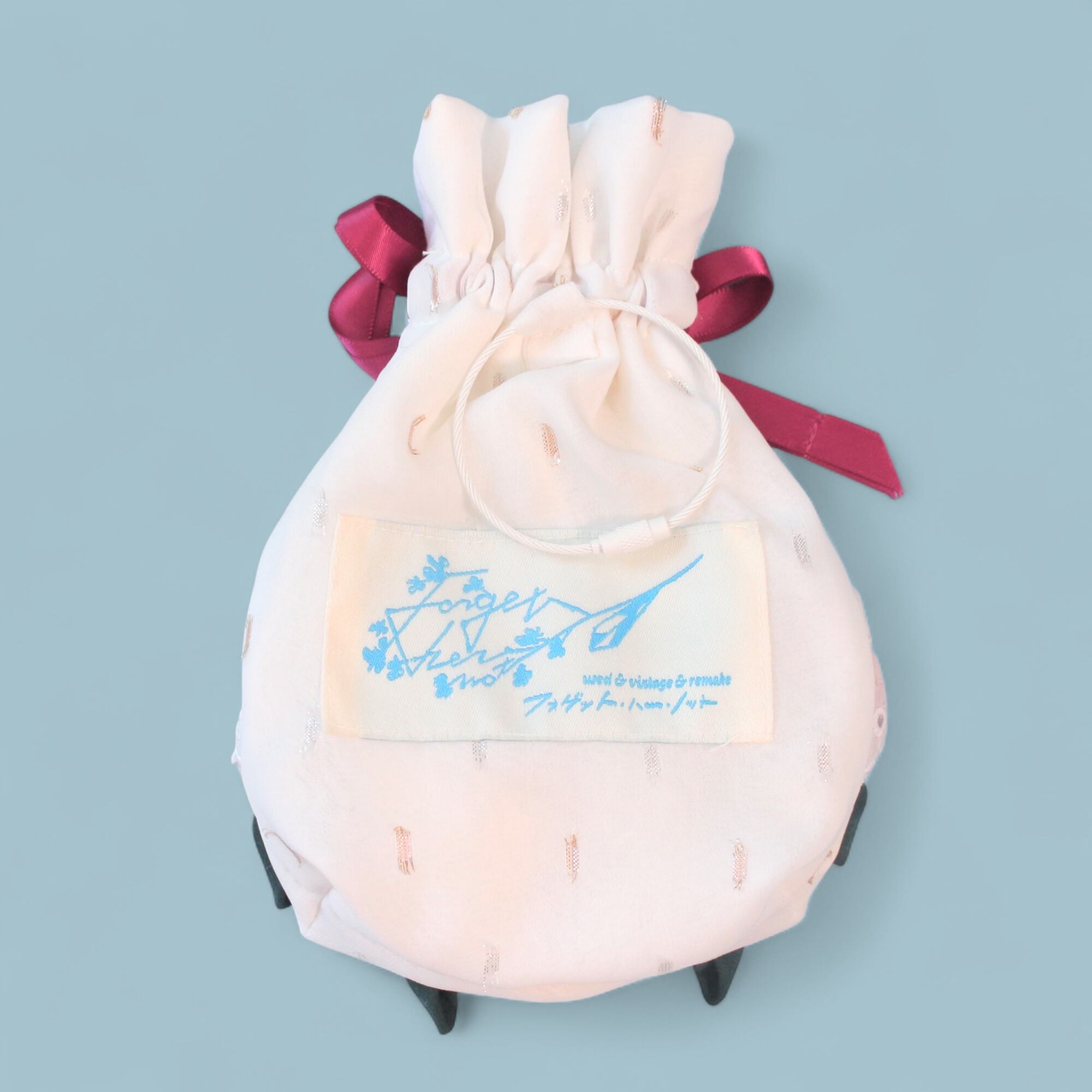 バッグなどにつけて携えられる『たったひとつの花束』の巾着ポーチです。