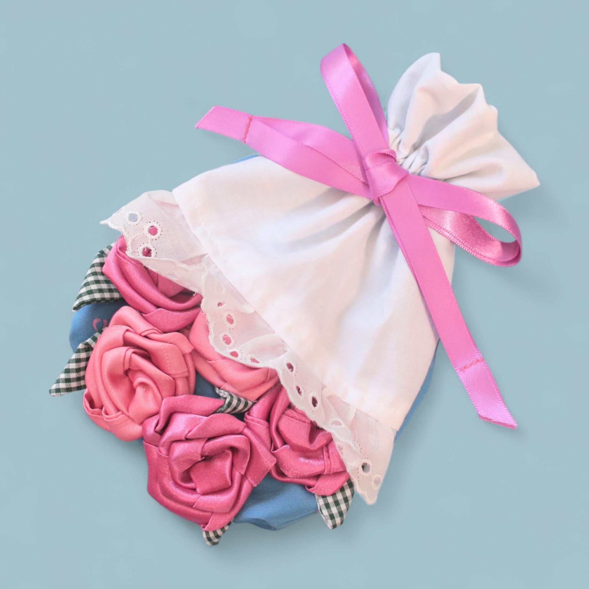 そんなハギレを集めて、世界でたったひとつのバラの花束にしました。