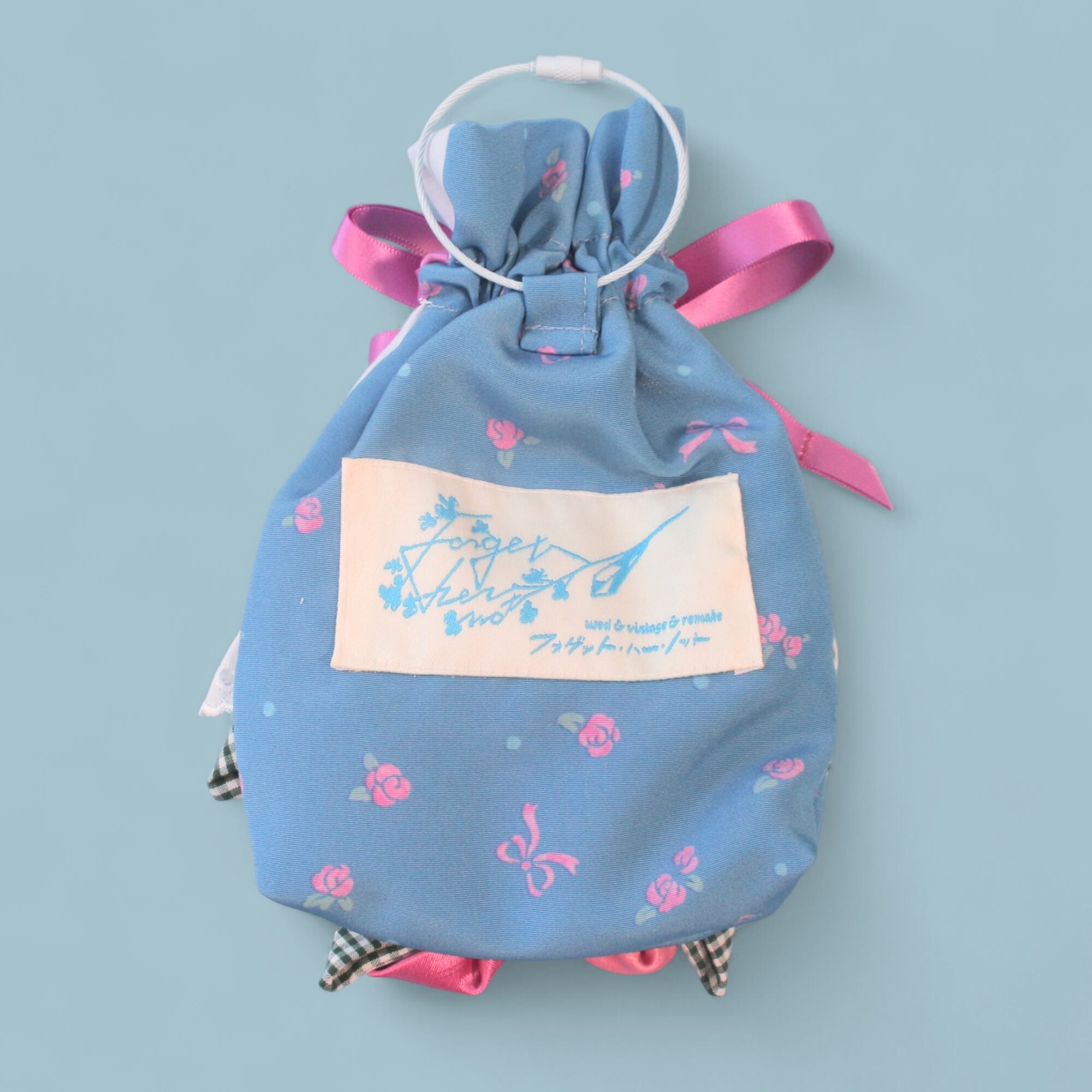 バッグなどにつけて携えられる『たったひとつの花束』の巾着ポーチです。