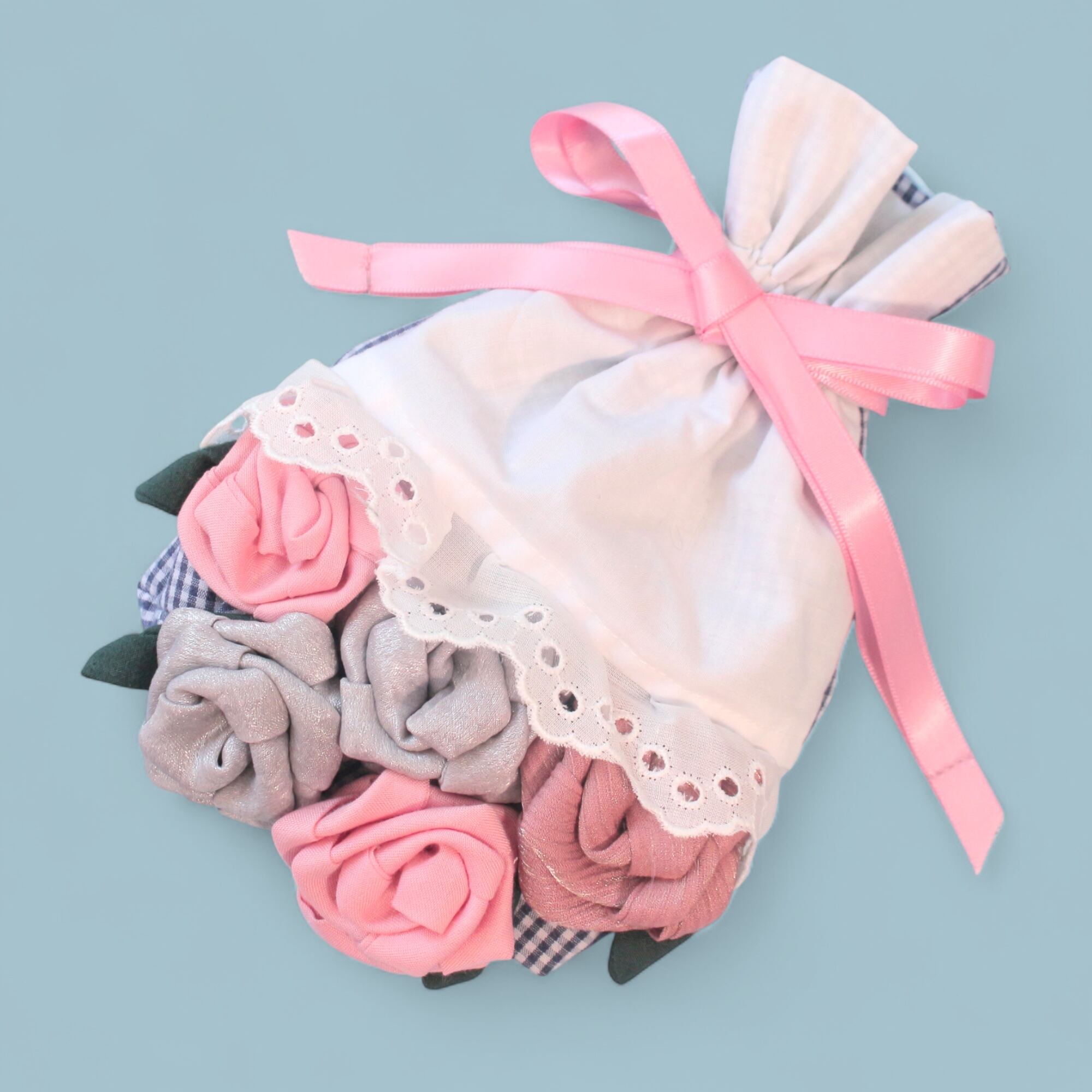そんなハギレを集めて、世界でたったひとつのバラの花束にしました。