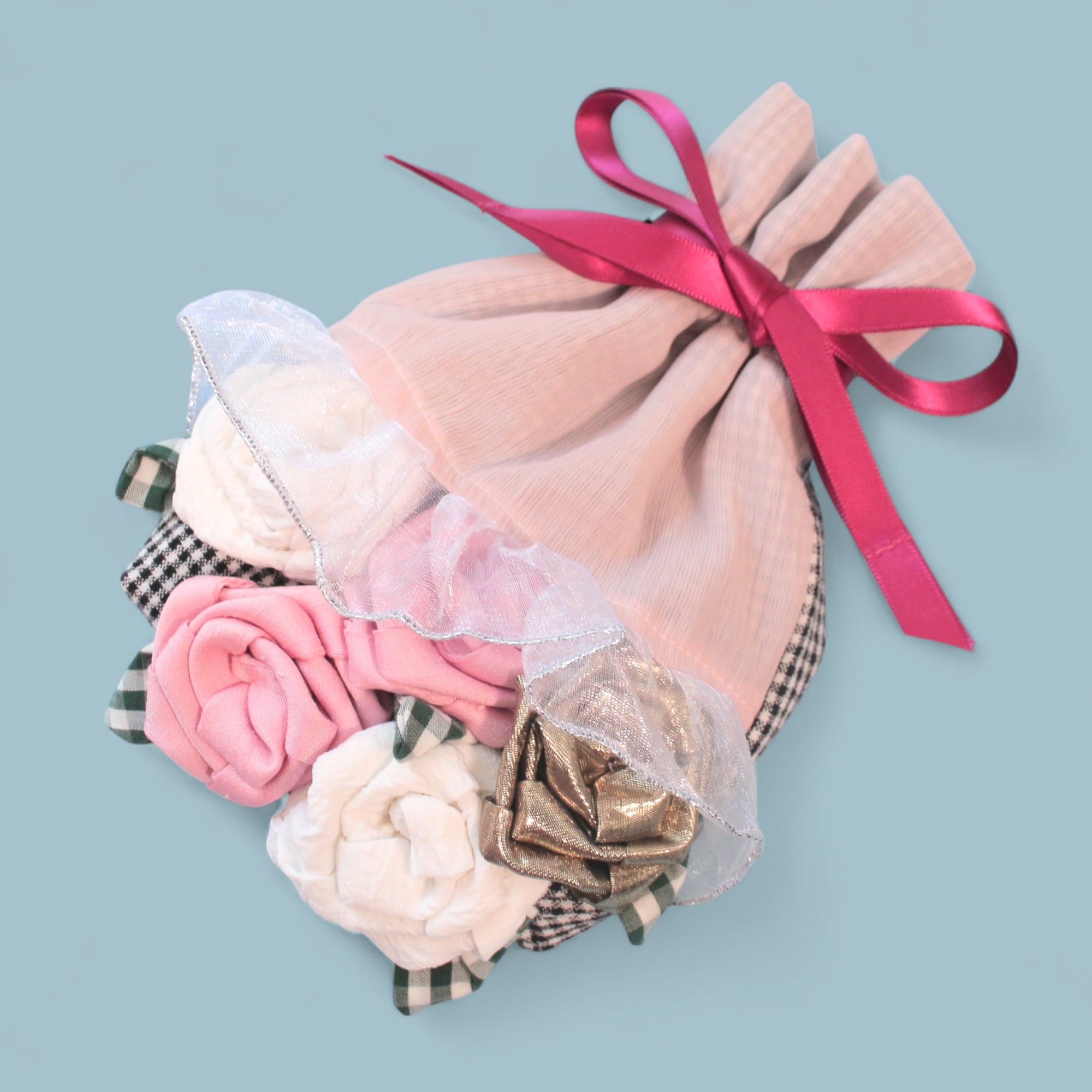 そんなハギレを集めて、世界でたったひとつのバラの花束にしました。