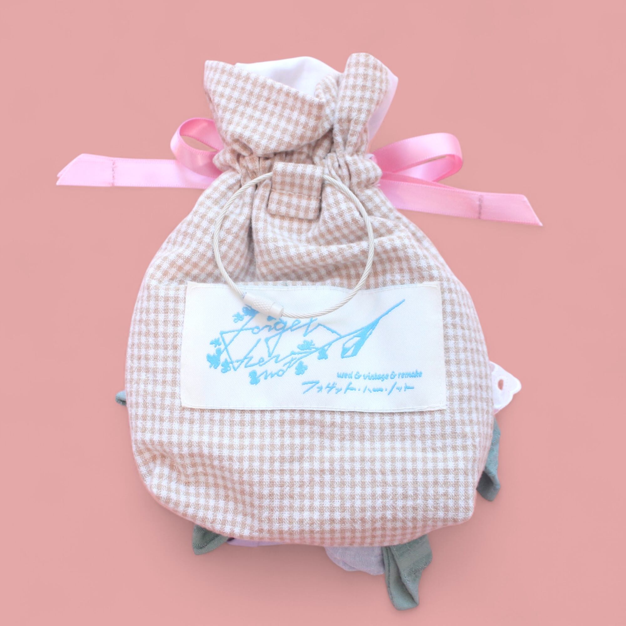 バッグなどにつけて携えられる『たったひとつの花束』の巾着ポーチです。