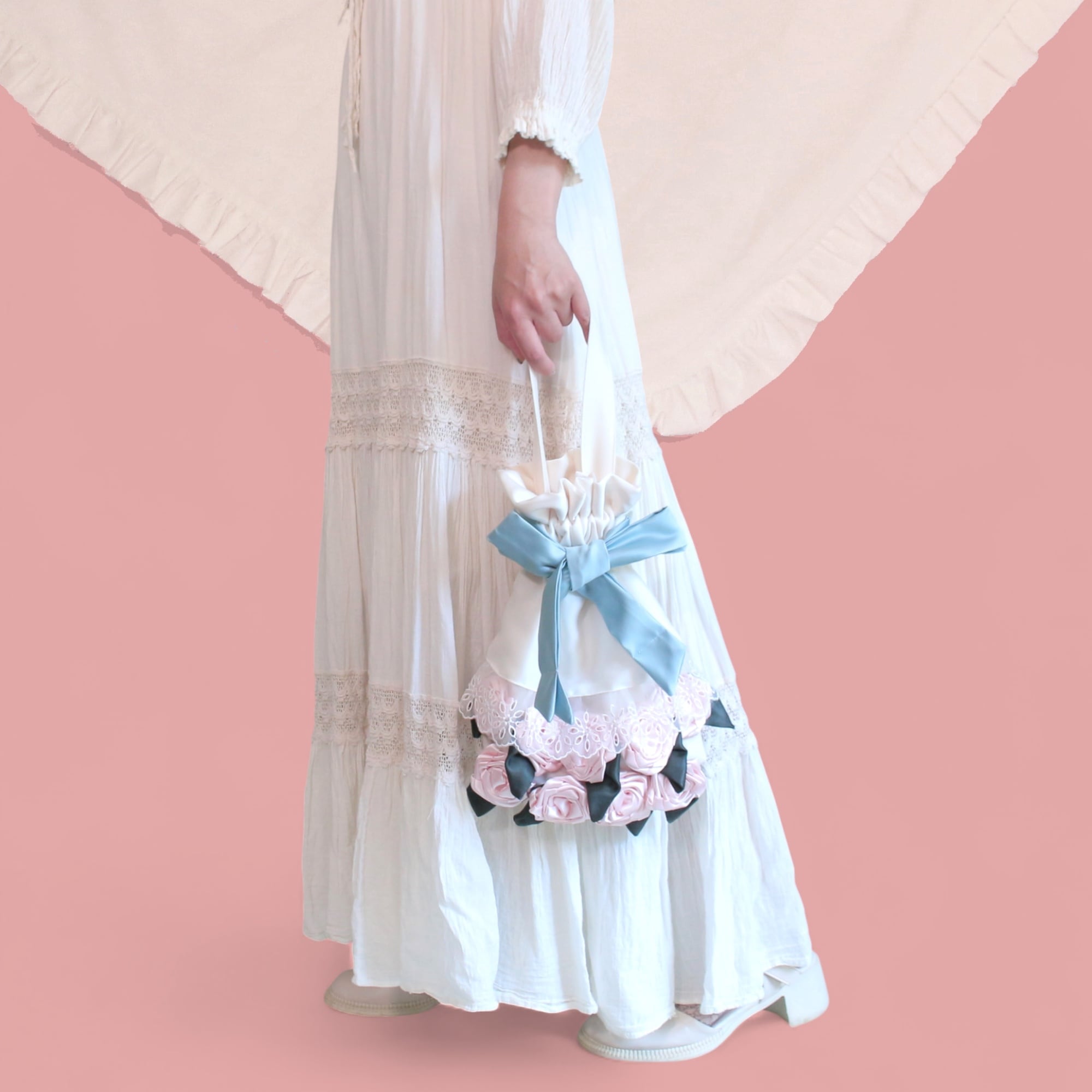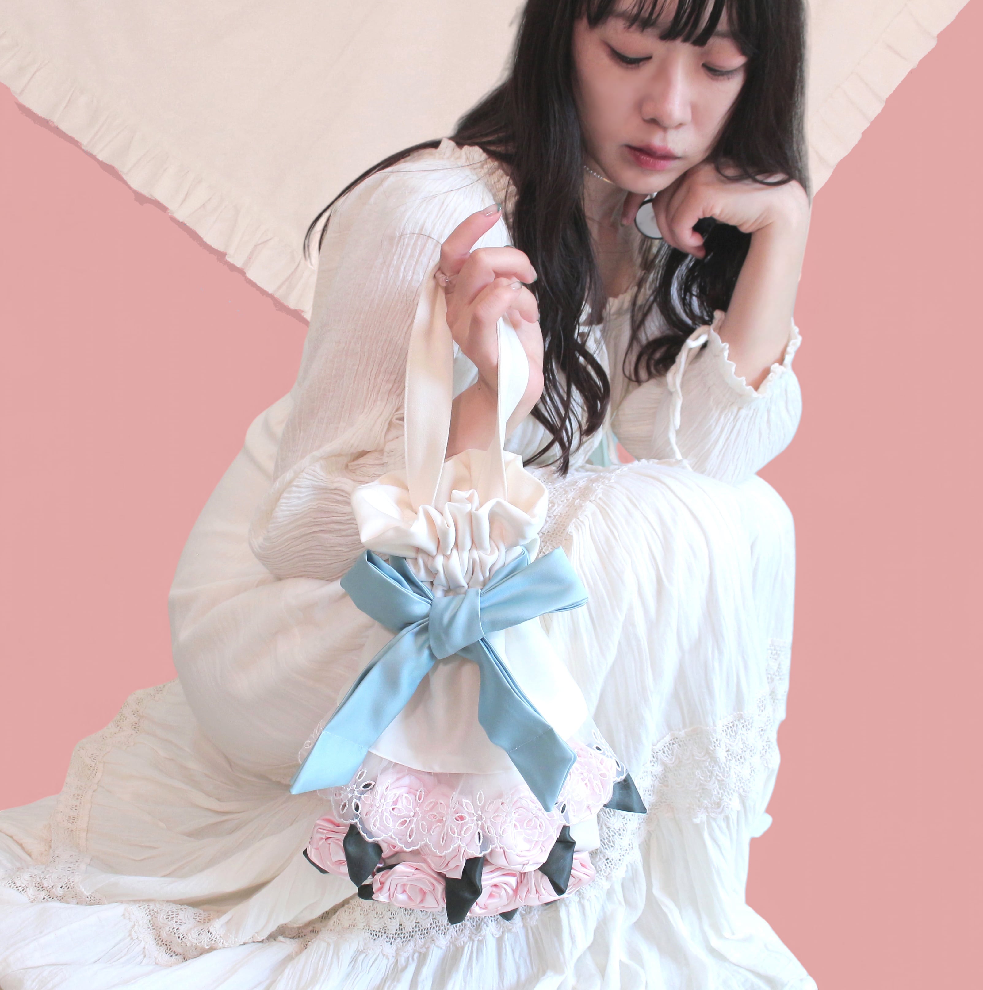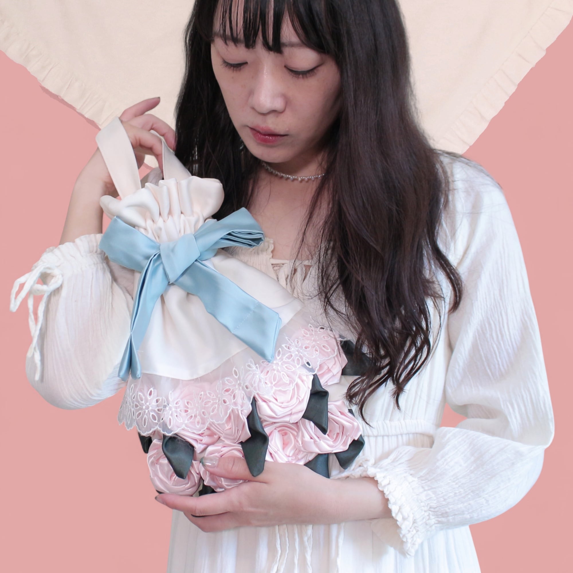 花束を束ねるリボンをほどいてバッグを開閉する使用です。