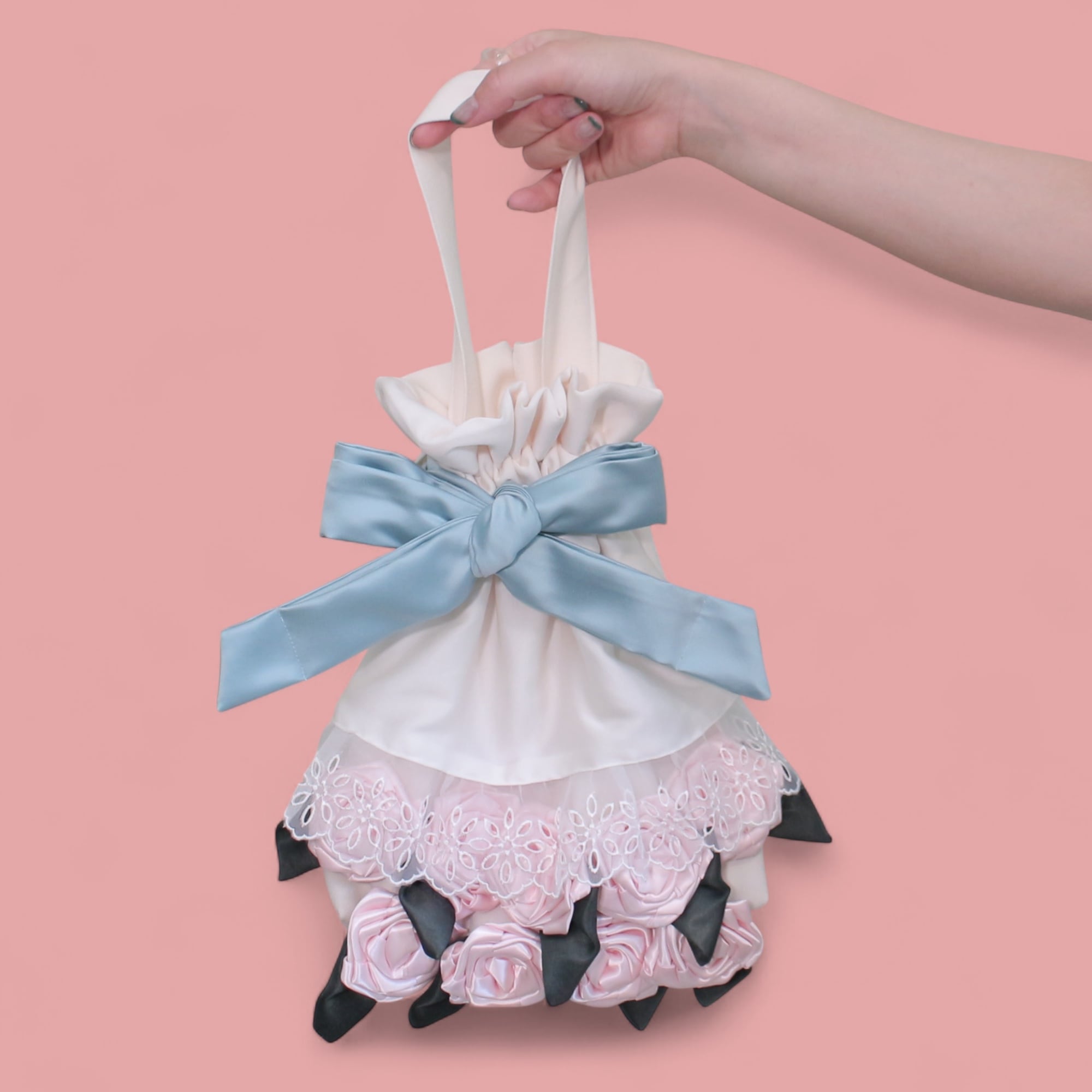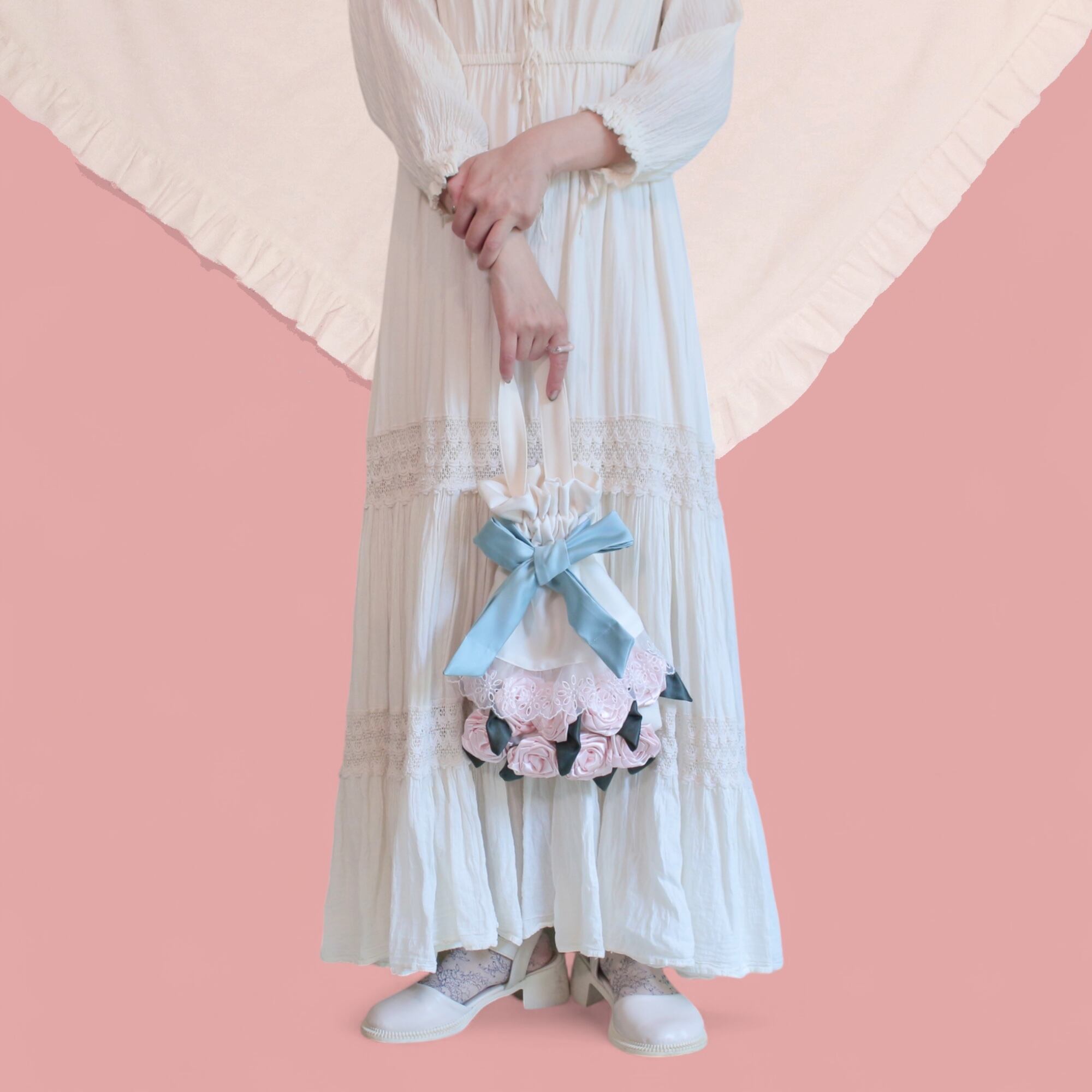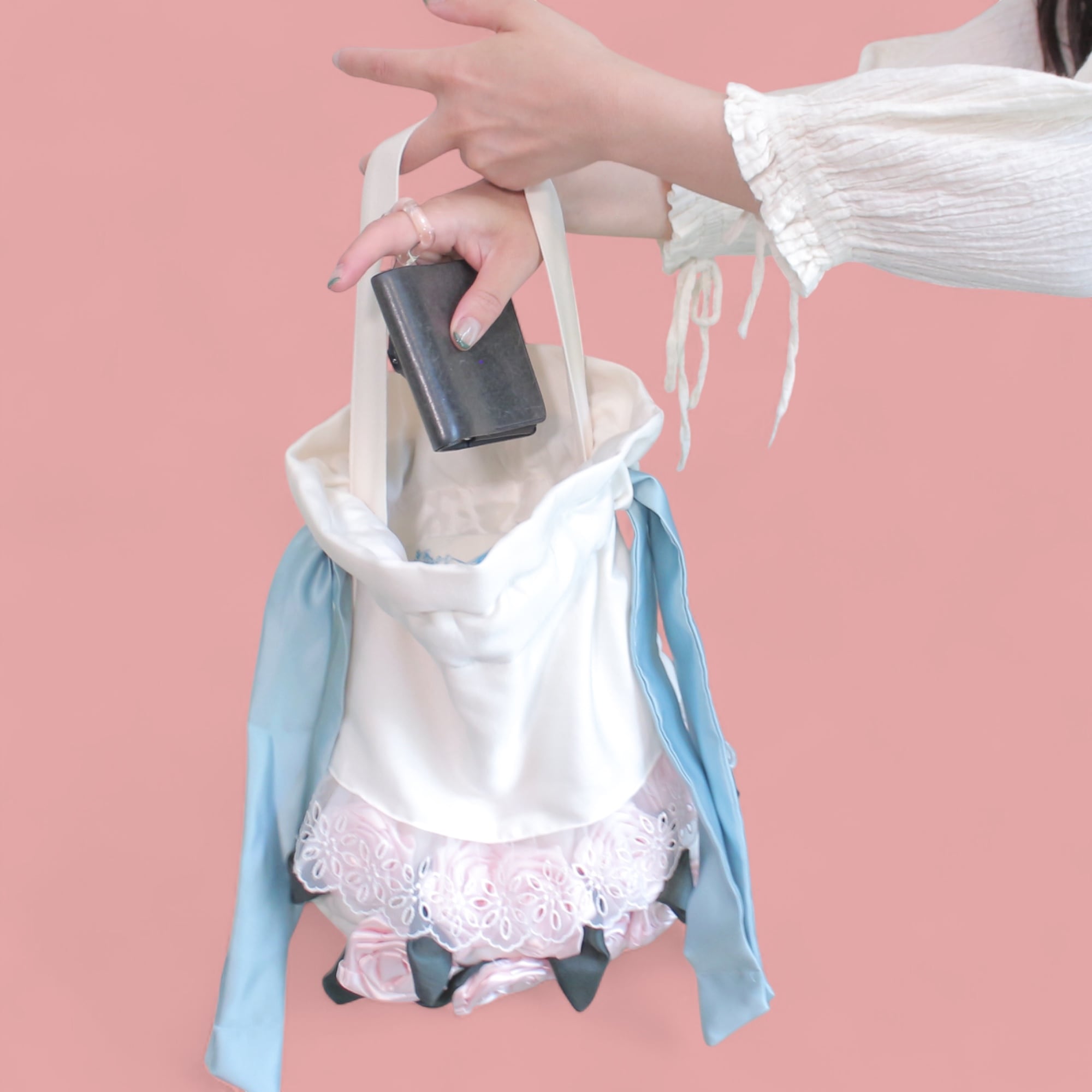 花束を束ねるリボンをほどいてバッグを開閉する使用です。