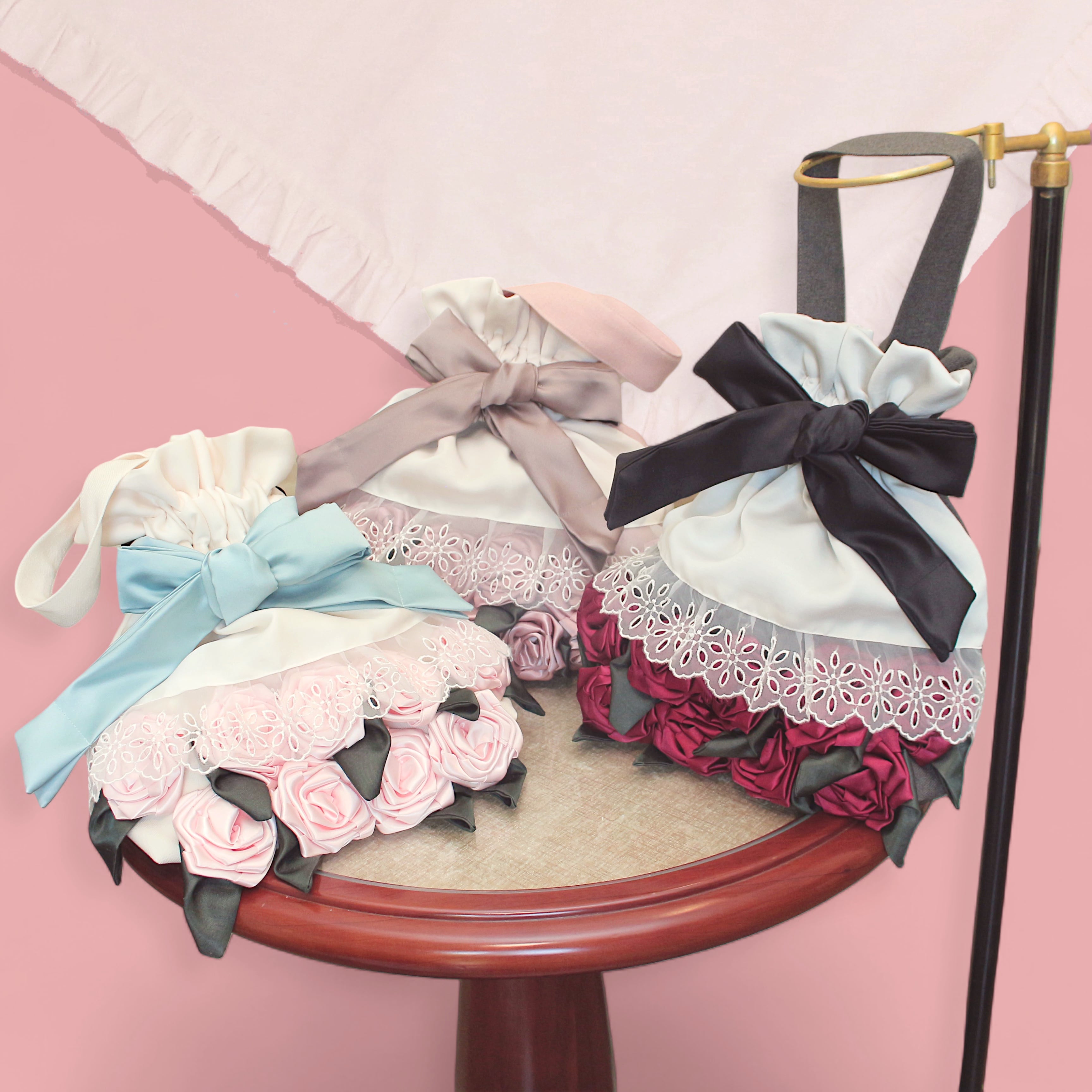 人気の花束ポーチが少し大人でrichな雰囲気のバッグになりました。