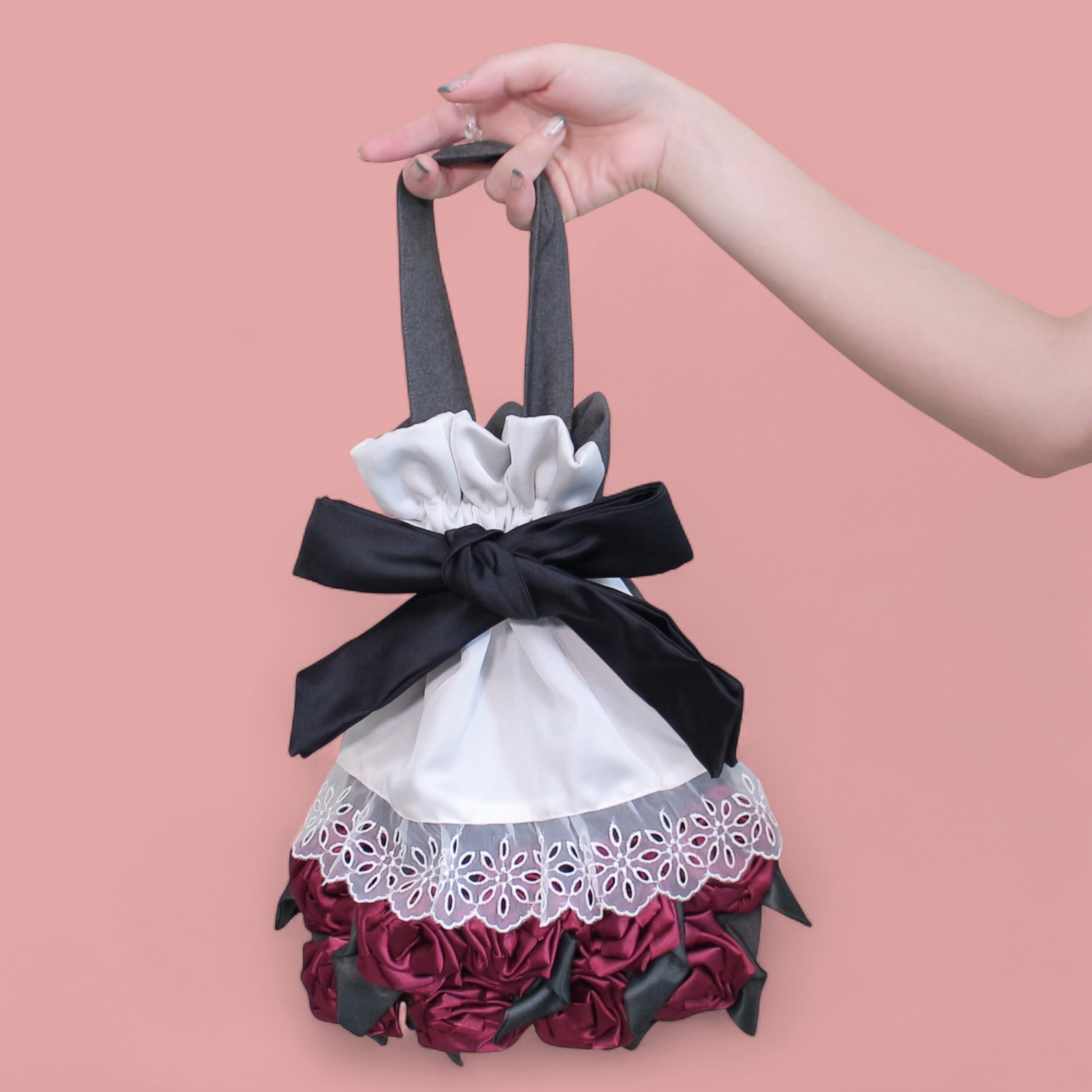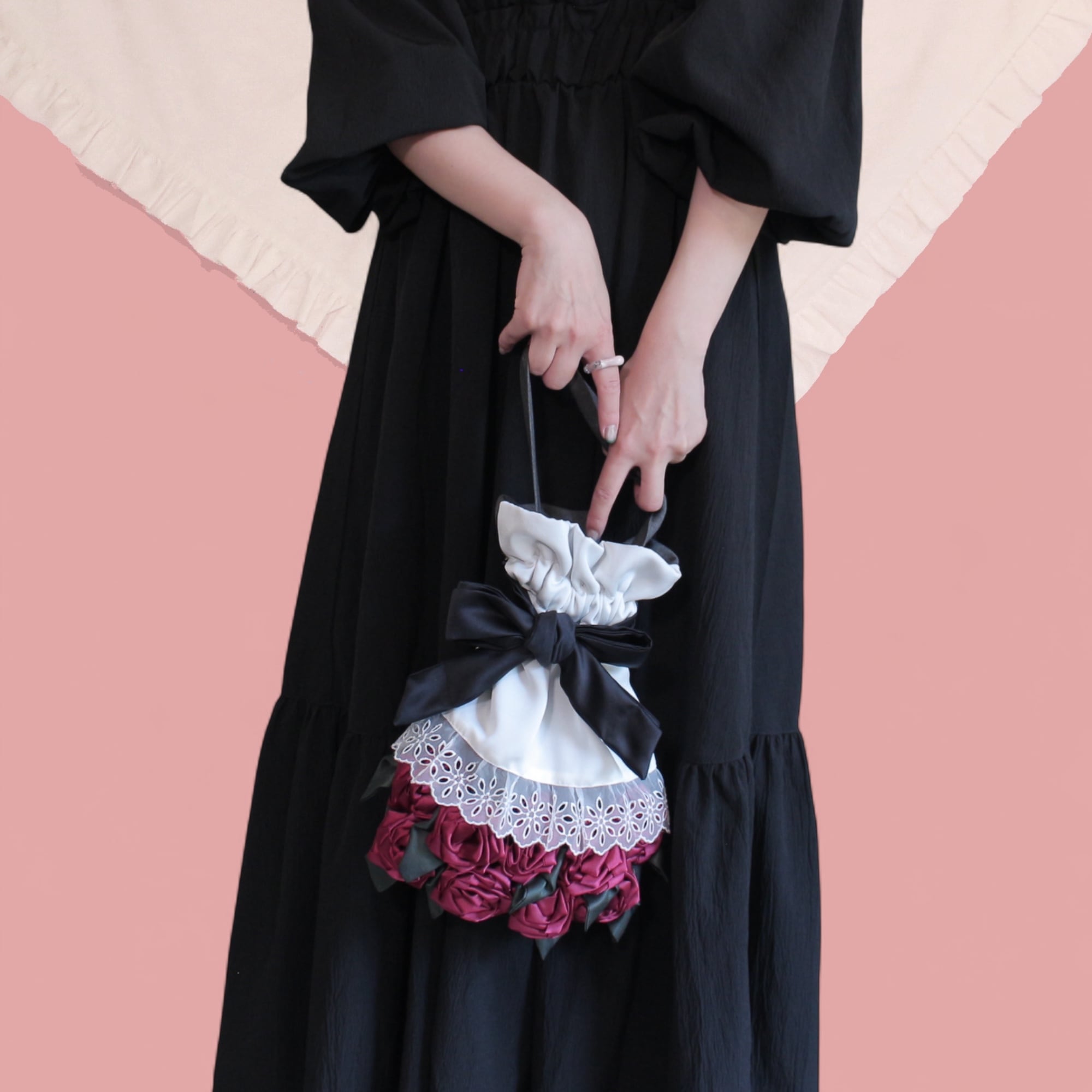 花束を束ねるリボンをほどいてバッグを開閉する使用です。