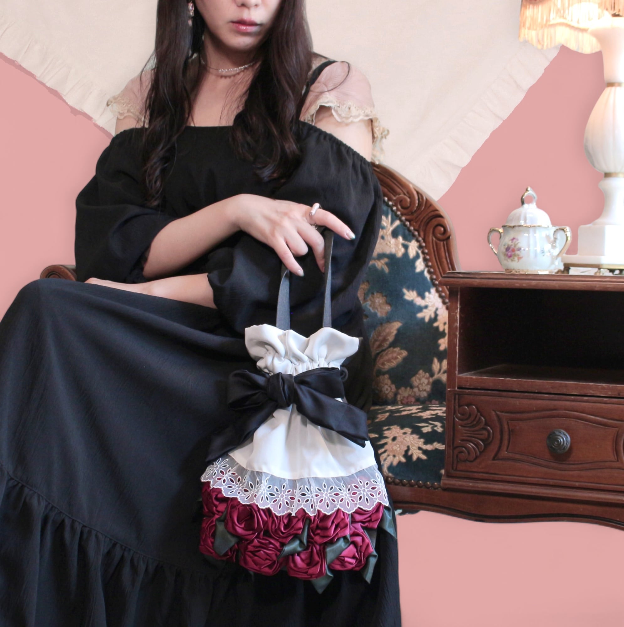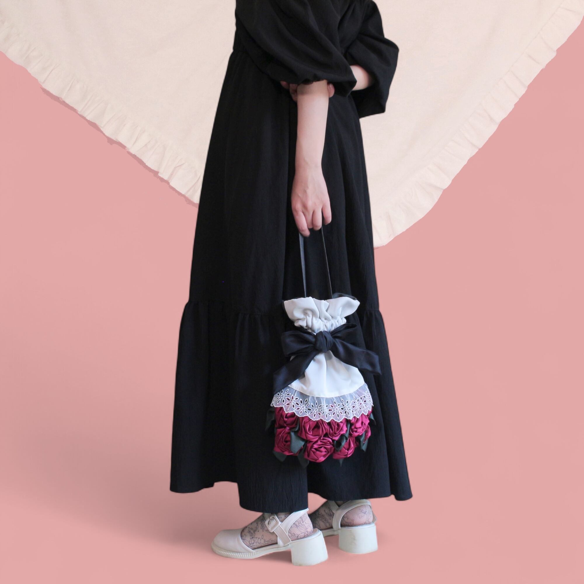 人気の花束ポーチが少し大人でrichな雰囲気のバッグになりました。