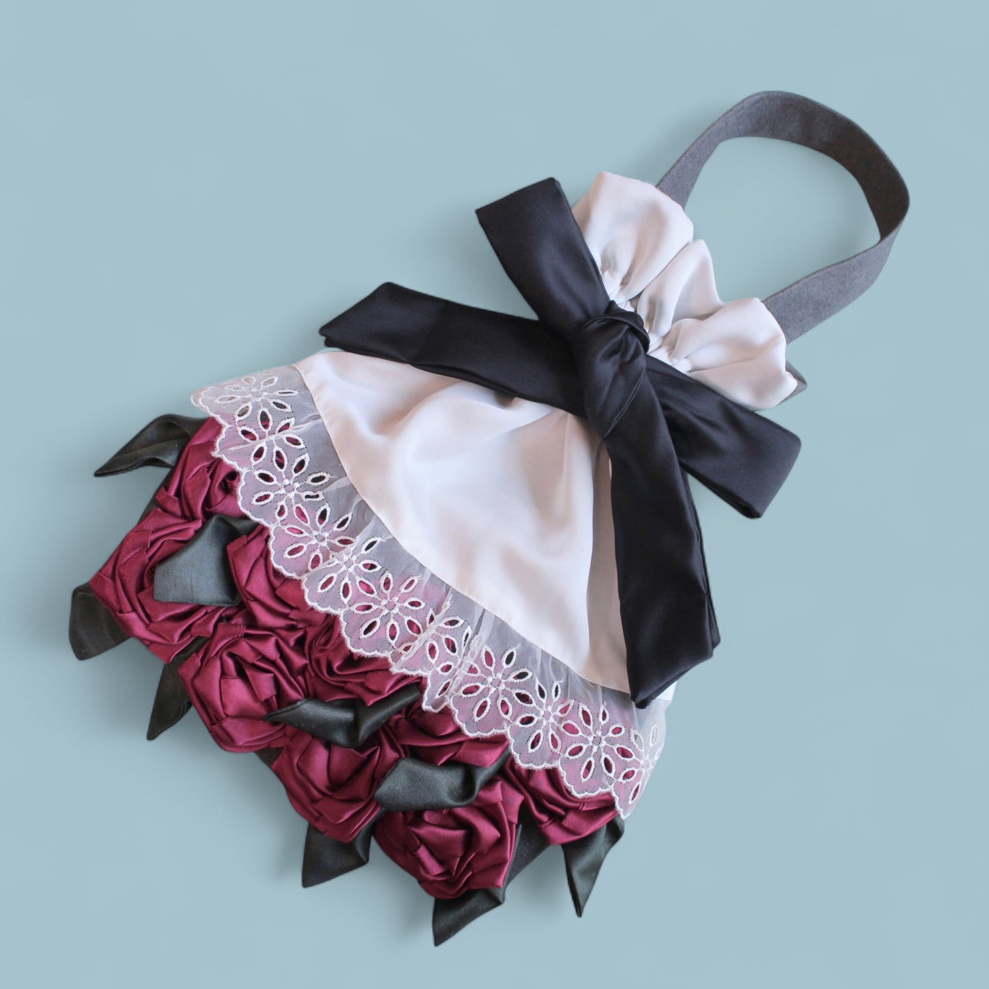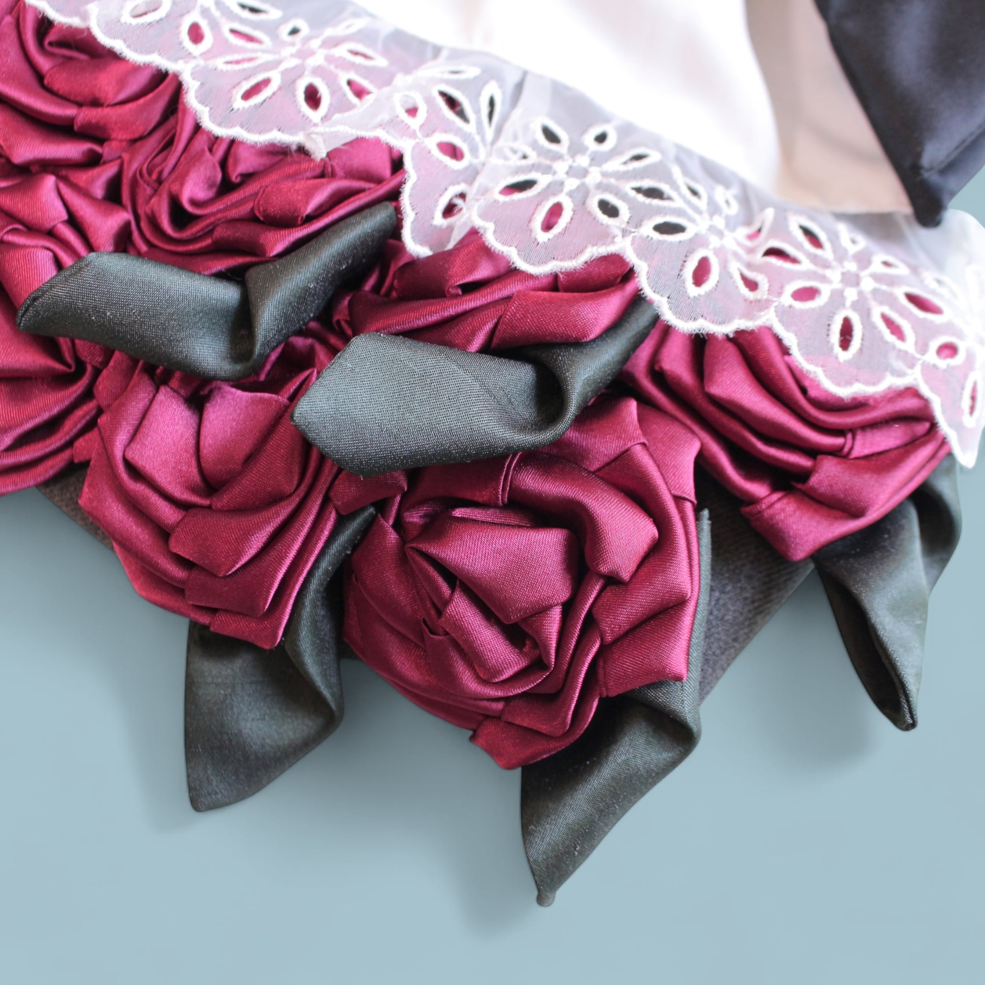 ひとつひとつ手縫いで形づくった大輪のバラが9輪。