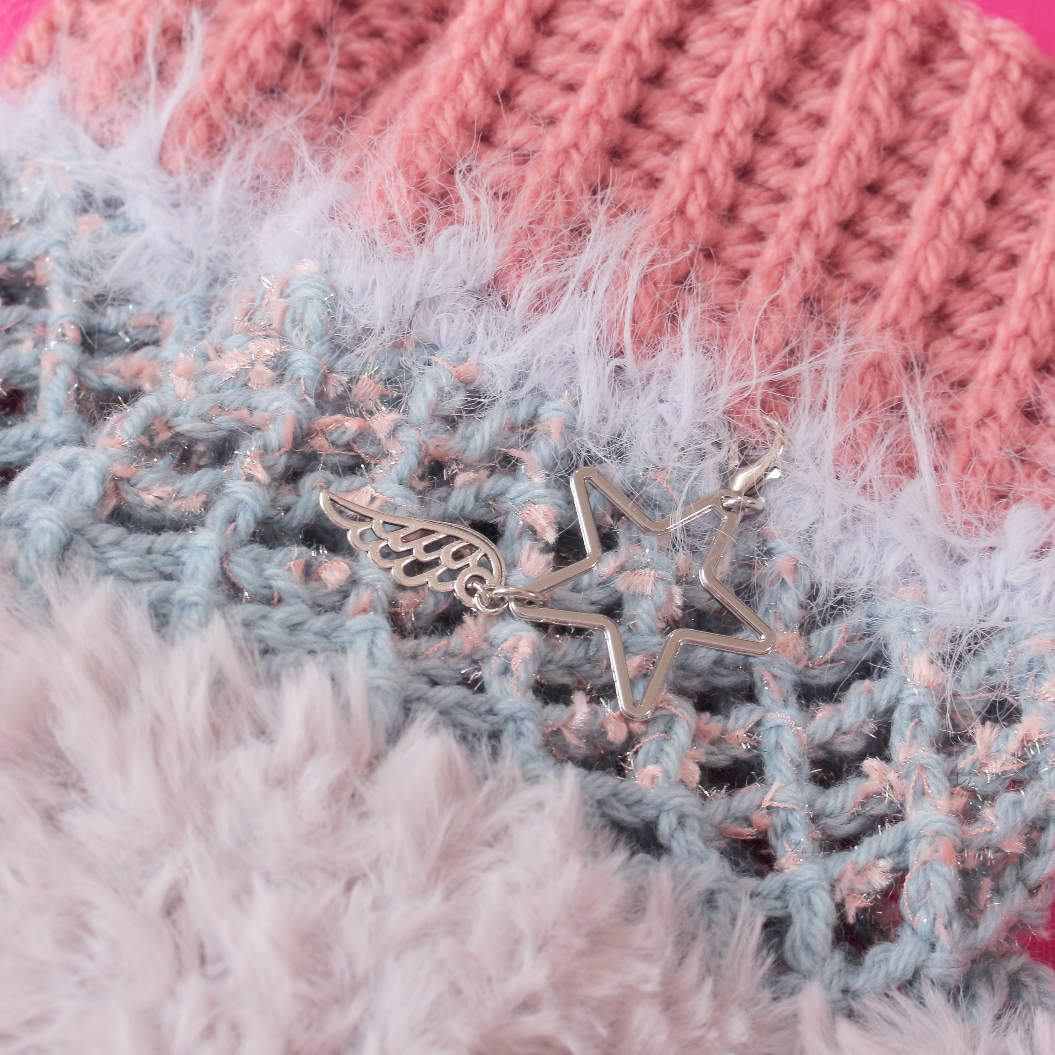 取り外しが可能な、星と羽のチャームがワンポイントになっています。