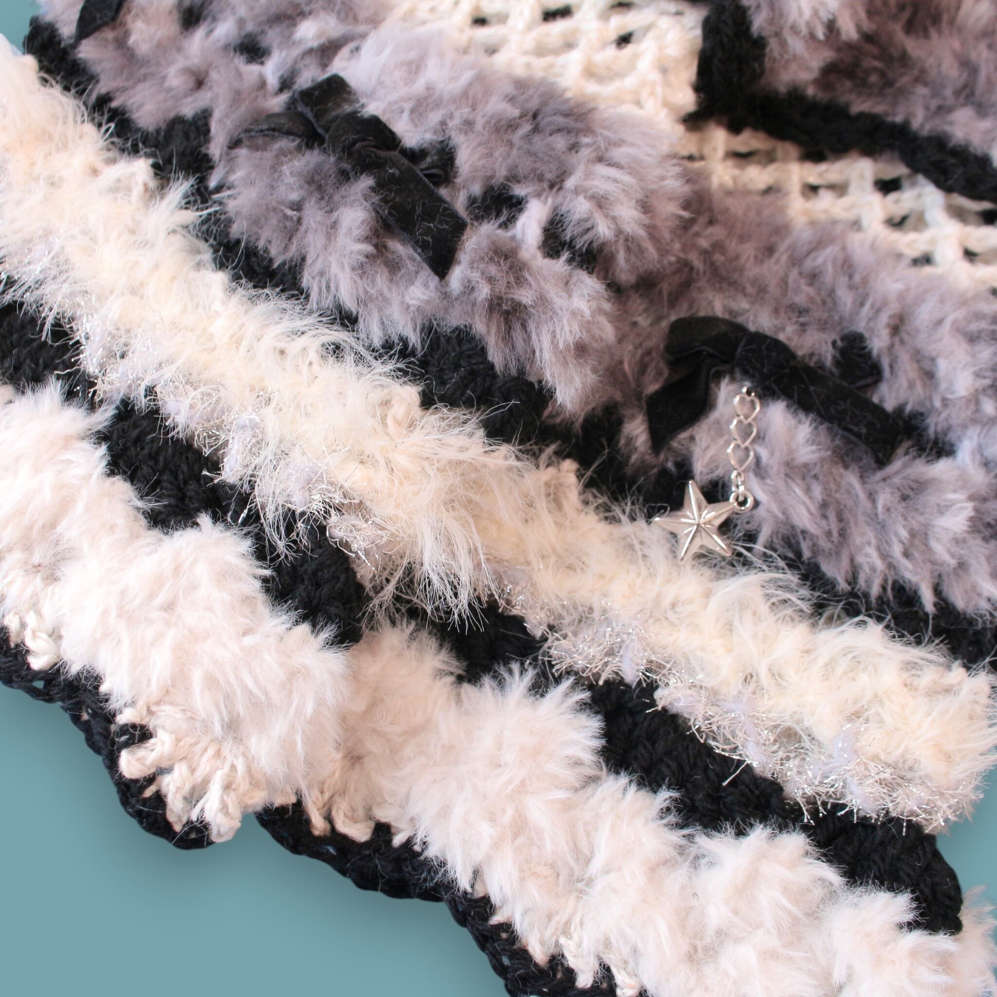 今季は平成パンクロックのテイストを全体に散りばめており、こちらは当時の白黒ボーダーソックスや編みタイツから着想を得て、令和のスタイルへと昇華させたデザインです。