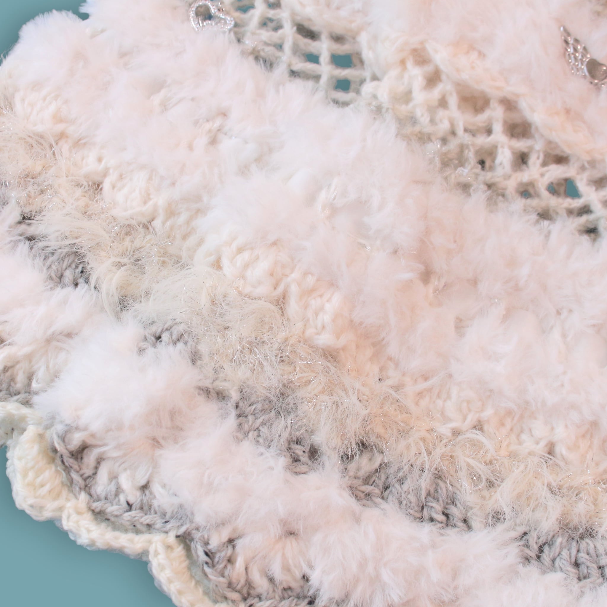 シルバーのラメ糸がアクセントになって、雪のような儚さ。