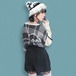 大きな星と今にも消えそうな肩翼がデザインされたアシンメトリーニットです。