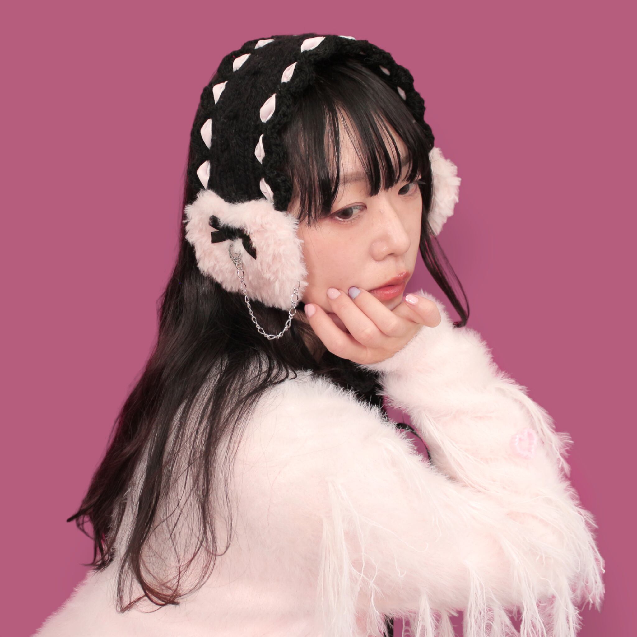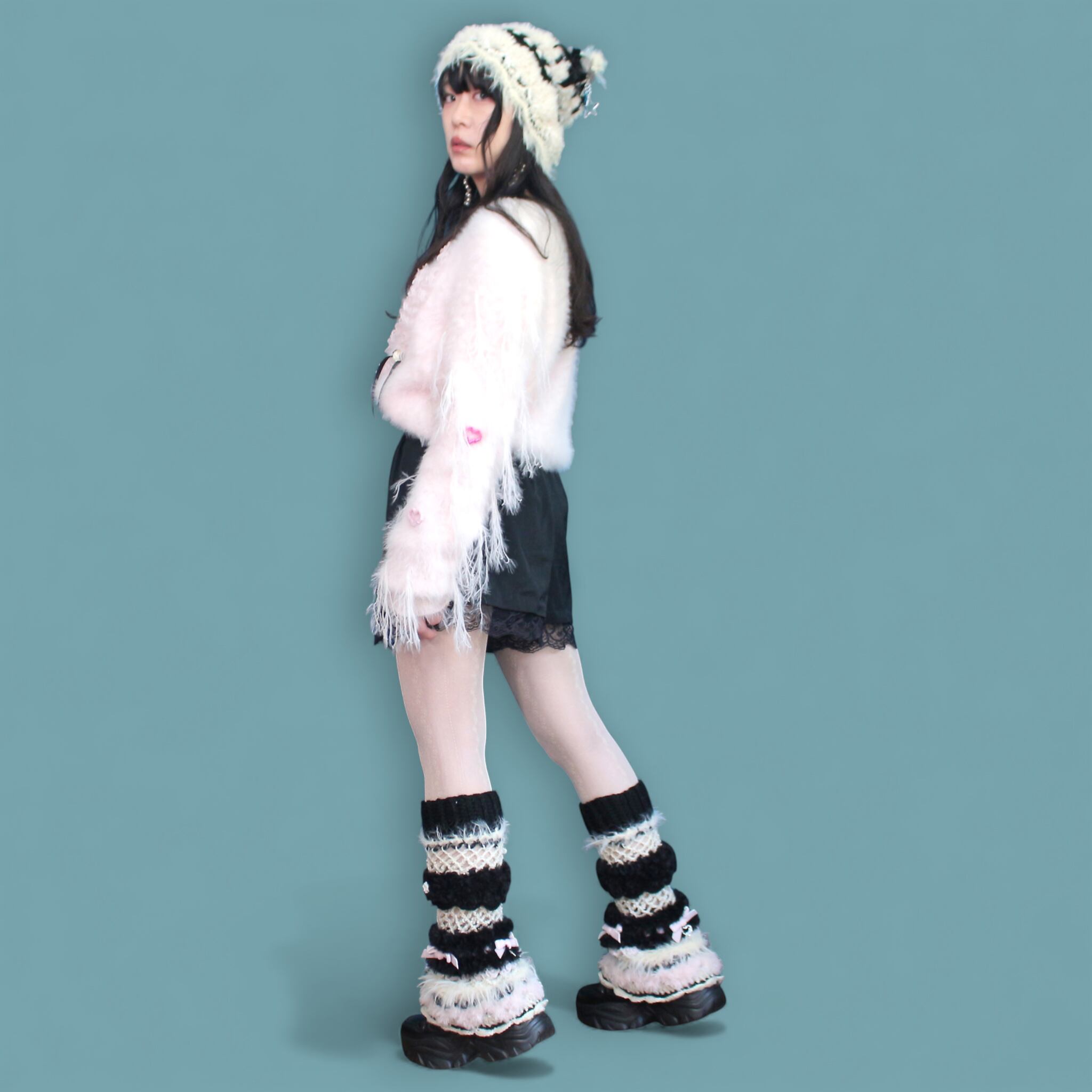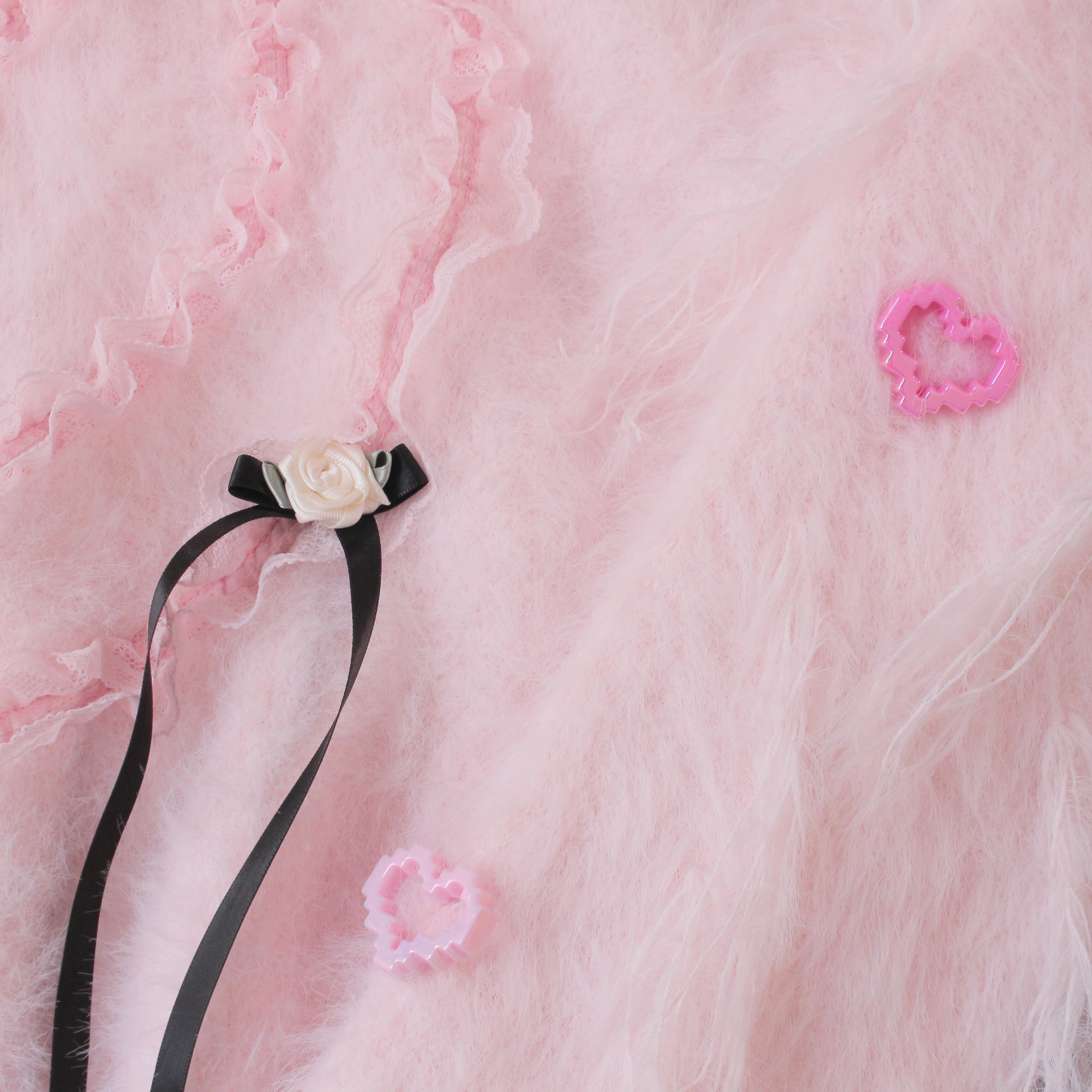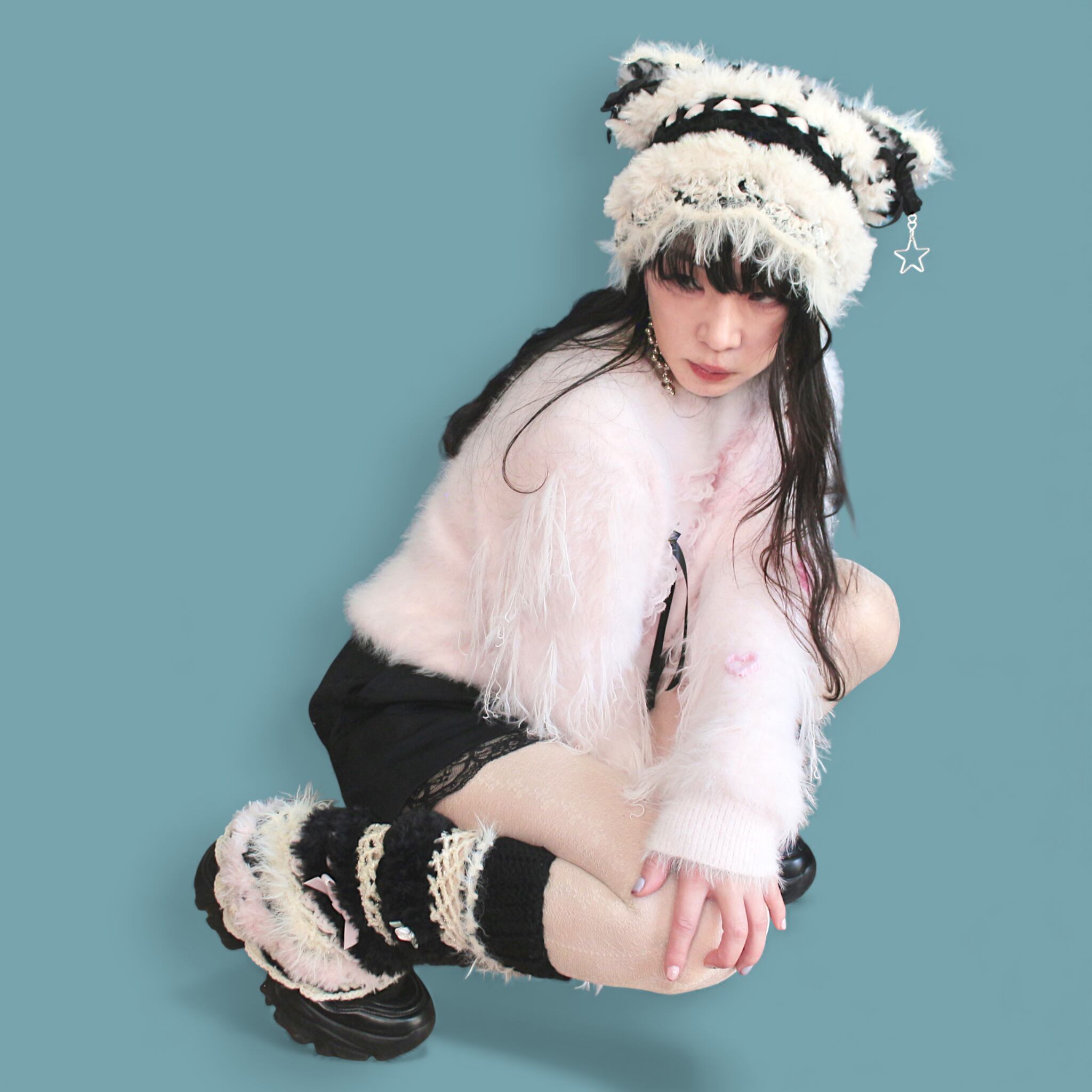 大きなハートがデザインされた子兎のようなシャギーニットです。