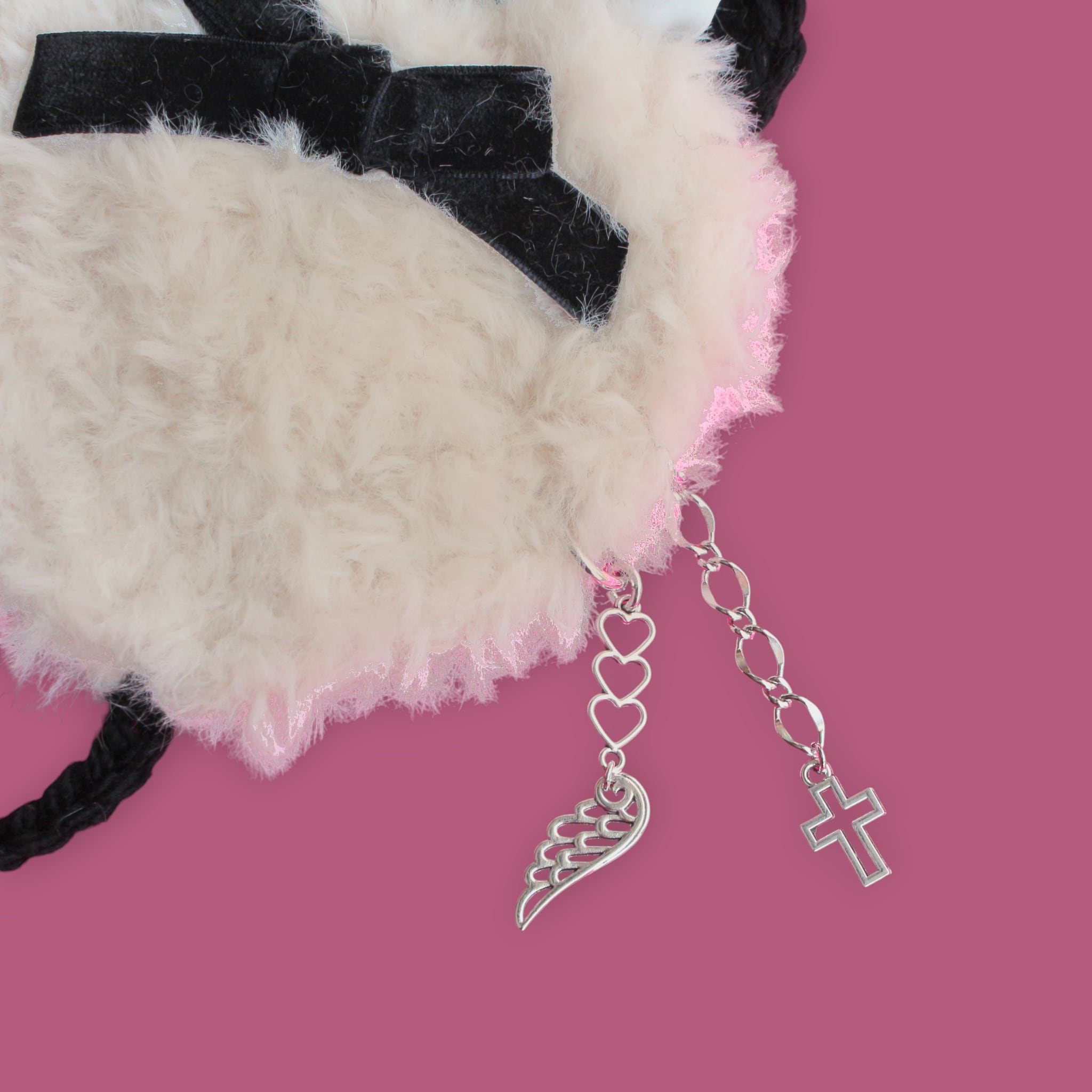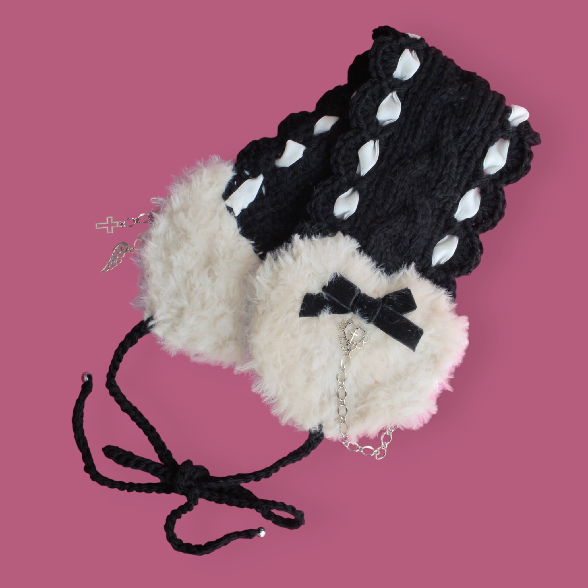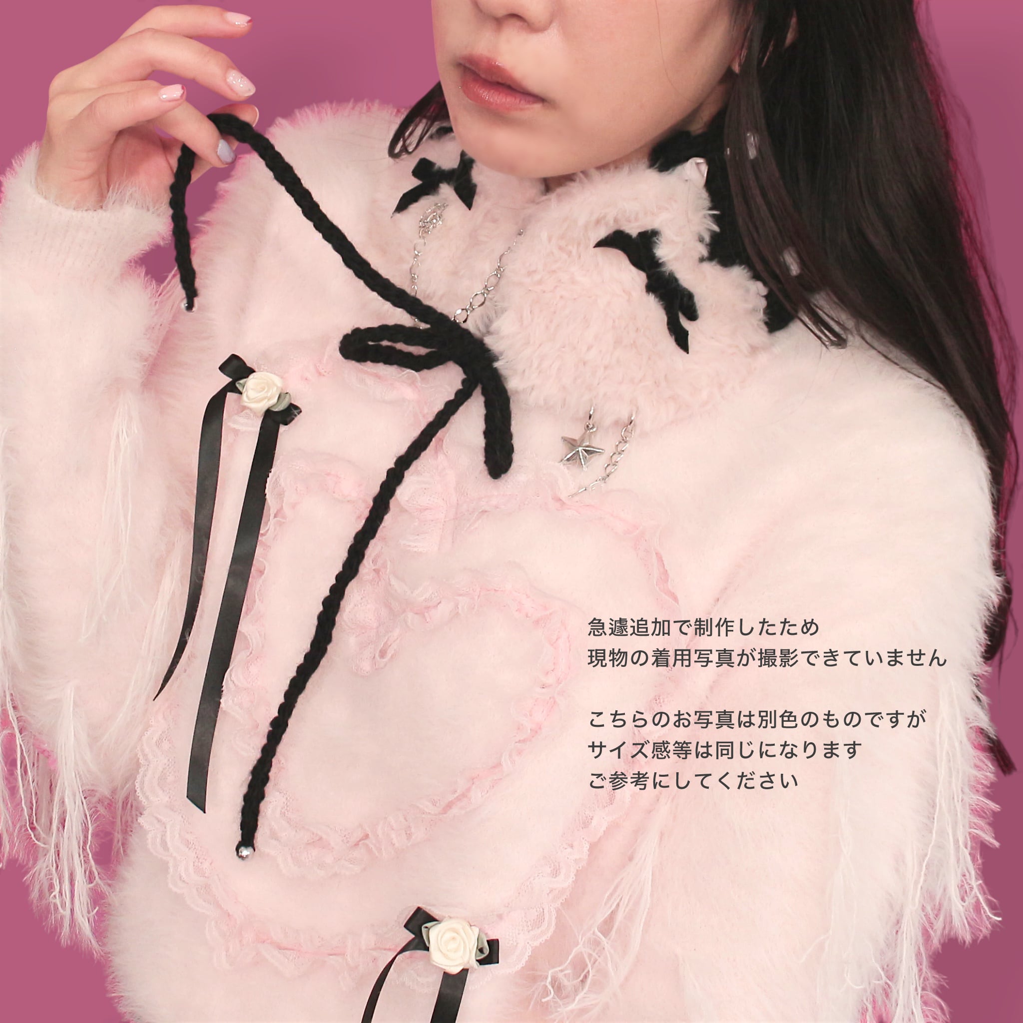 ふわふわのファーで編んだハートが寒さから守ってくれます。