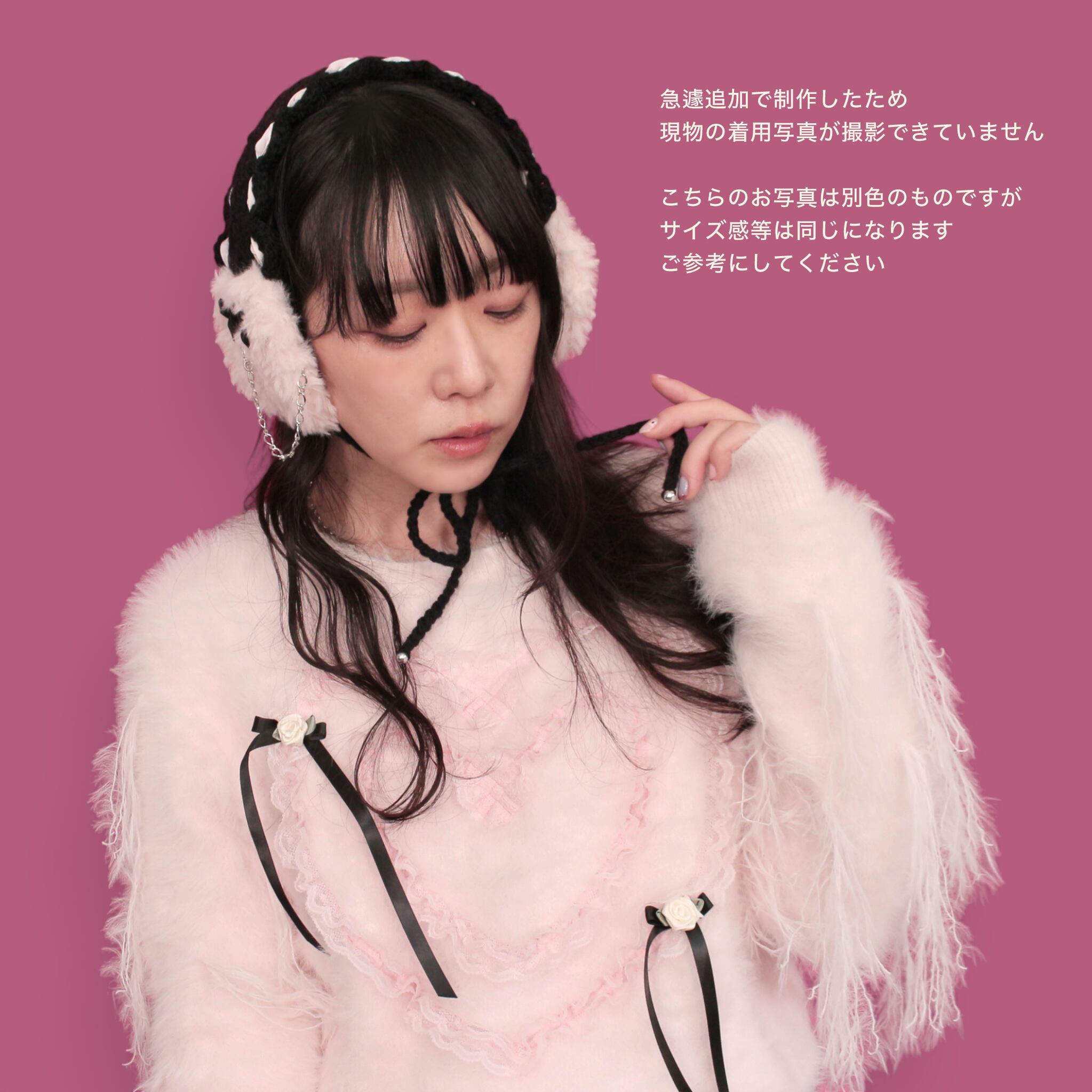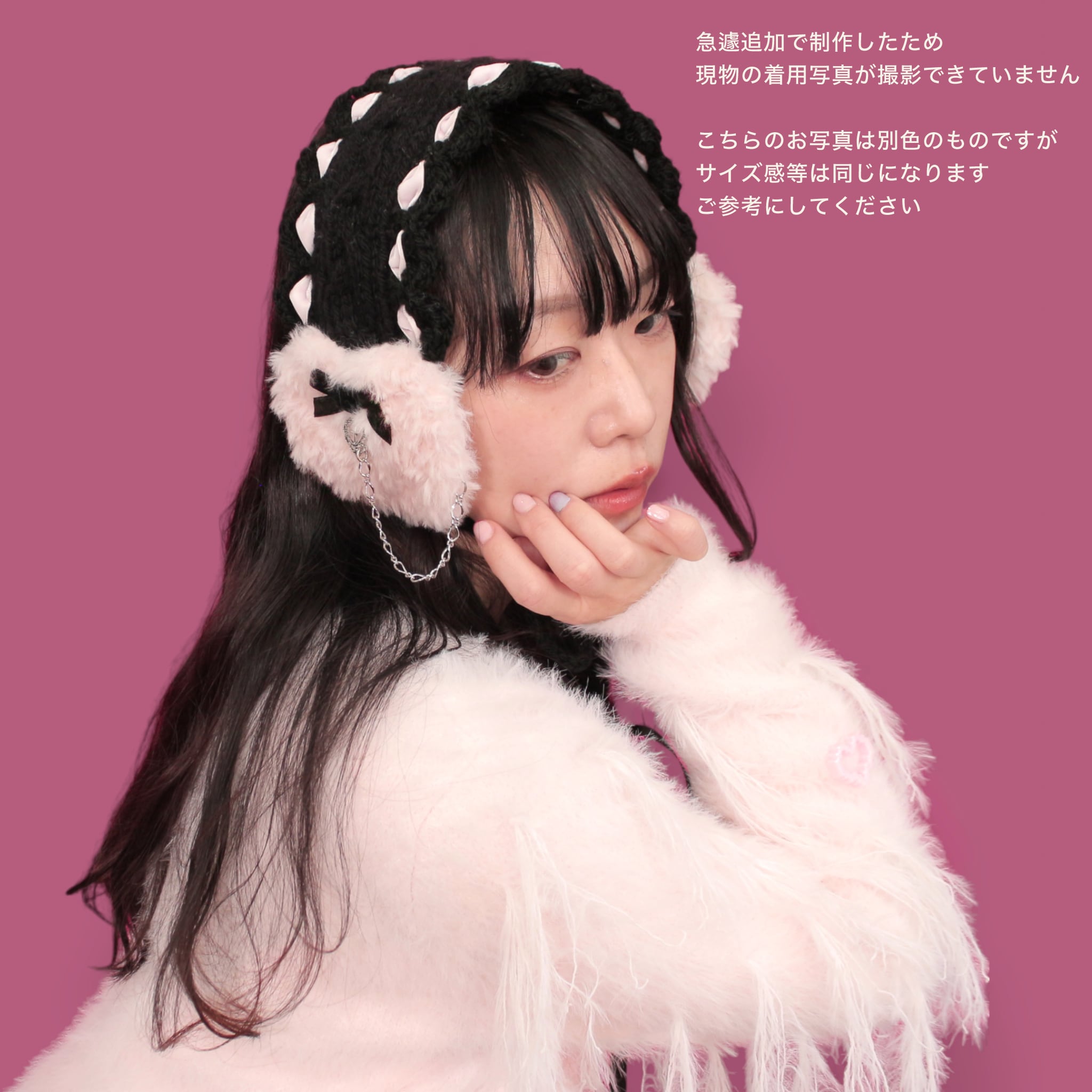 シルバーのチャームがポイントになったハートのイヤーマフです。
