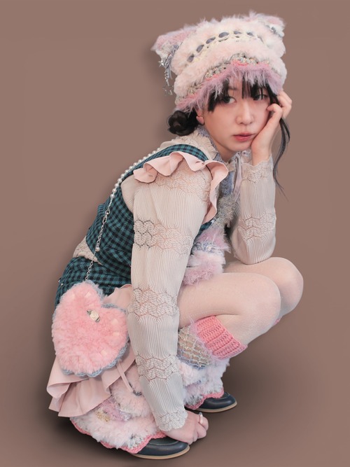 forget-her-notの定番アイテムを、ふわふわファーの毛糸で製作しました。