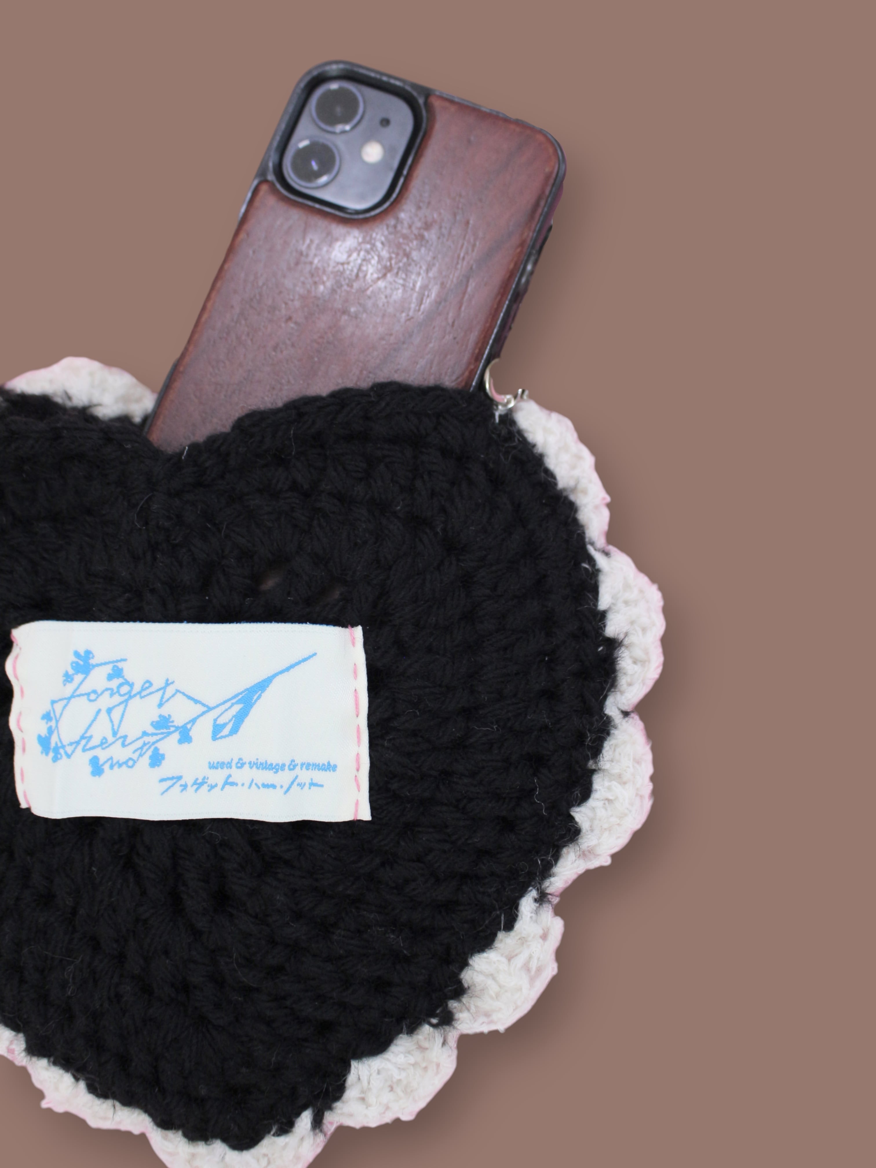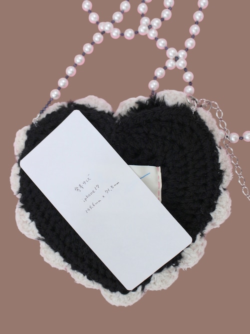 手編みハートのスマホポシェットです。