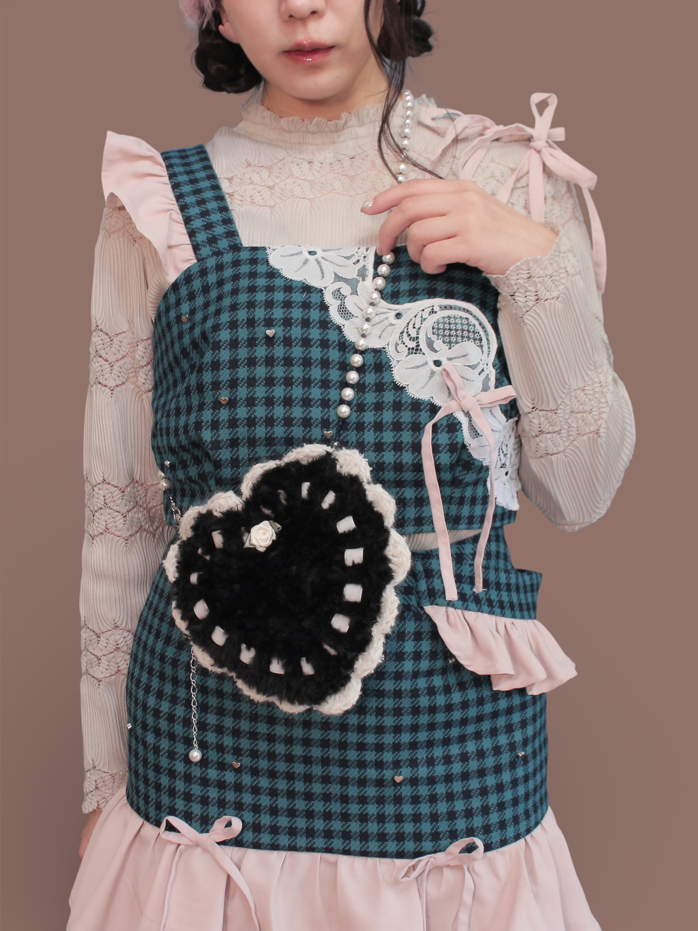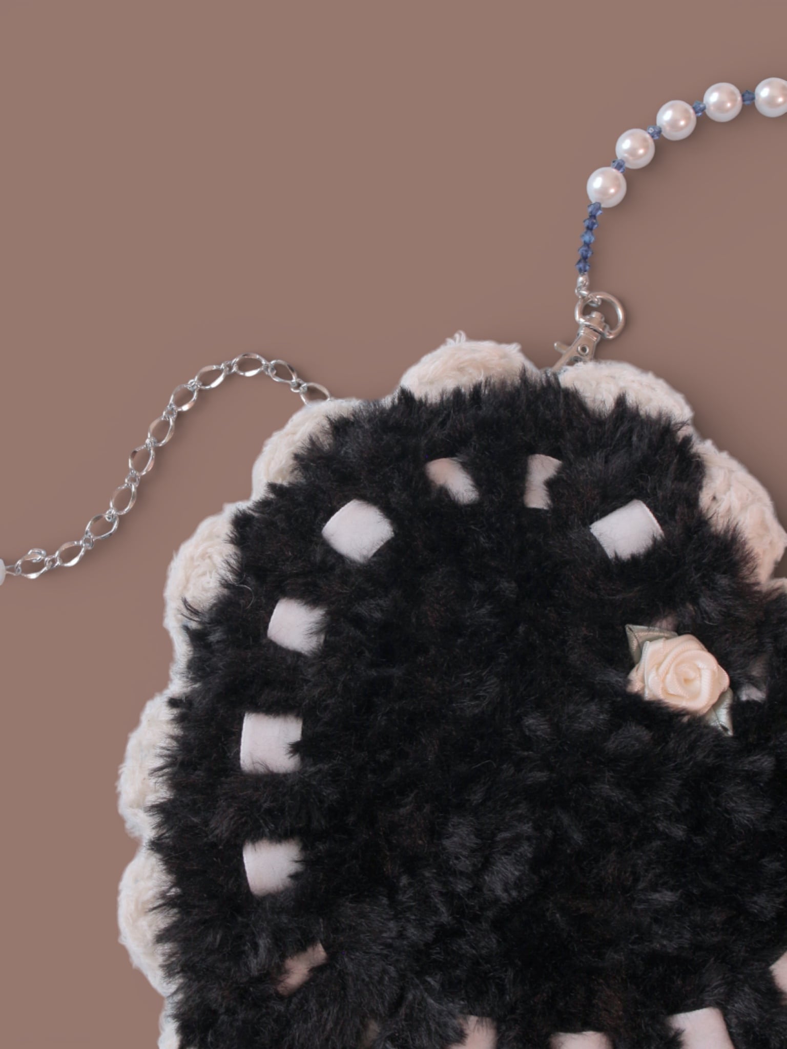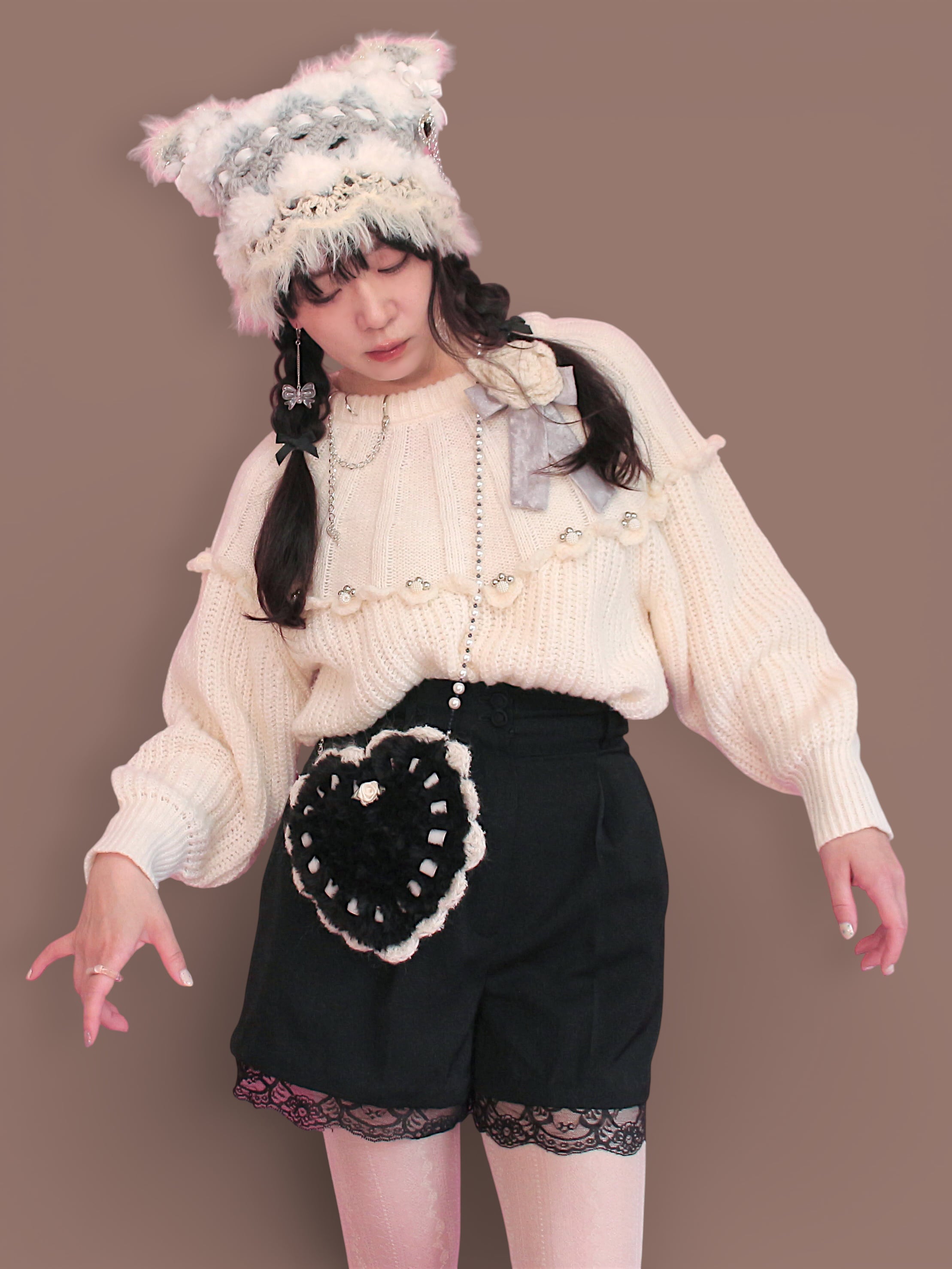 forget-her-notの定番アイテムを、ふわふわファーの毛糸で製作しました。