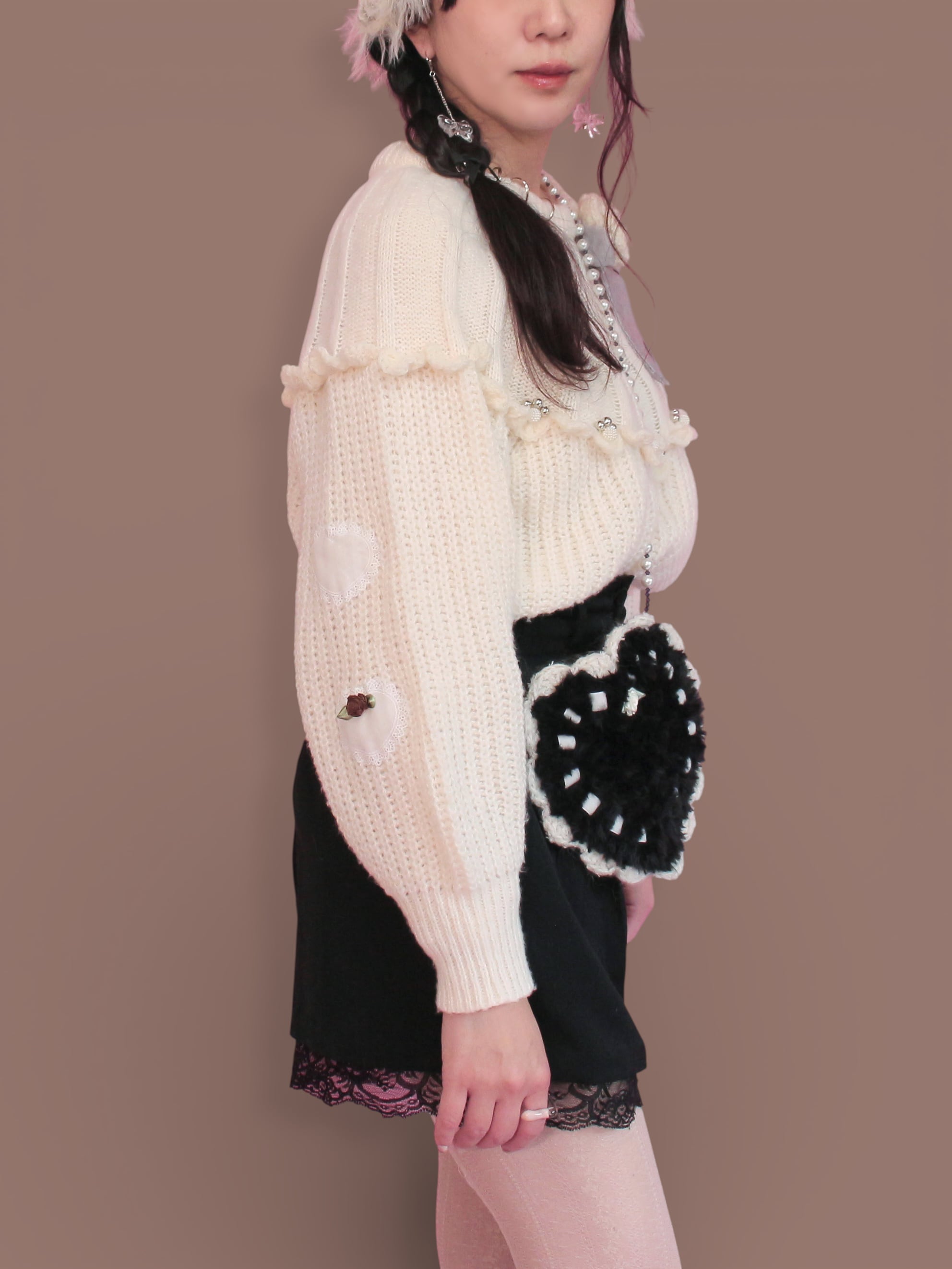 お袖には粉砂糖のように真っ白なハート、ちょこんと乗っているのはチョコレート色のミニバラ。
