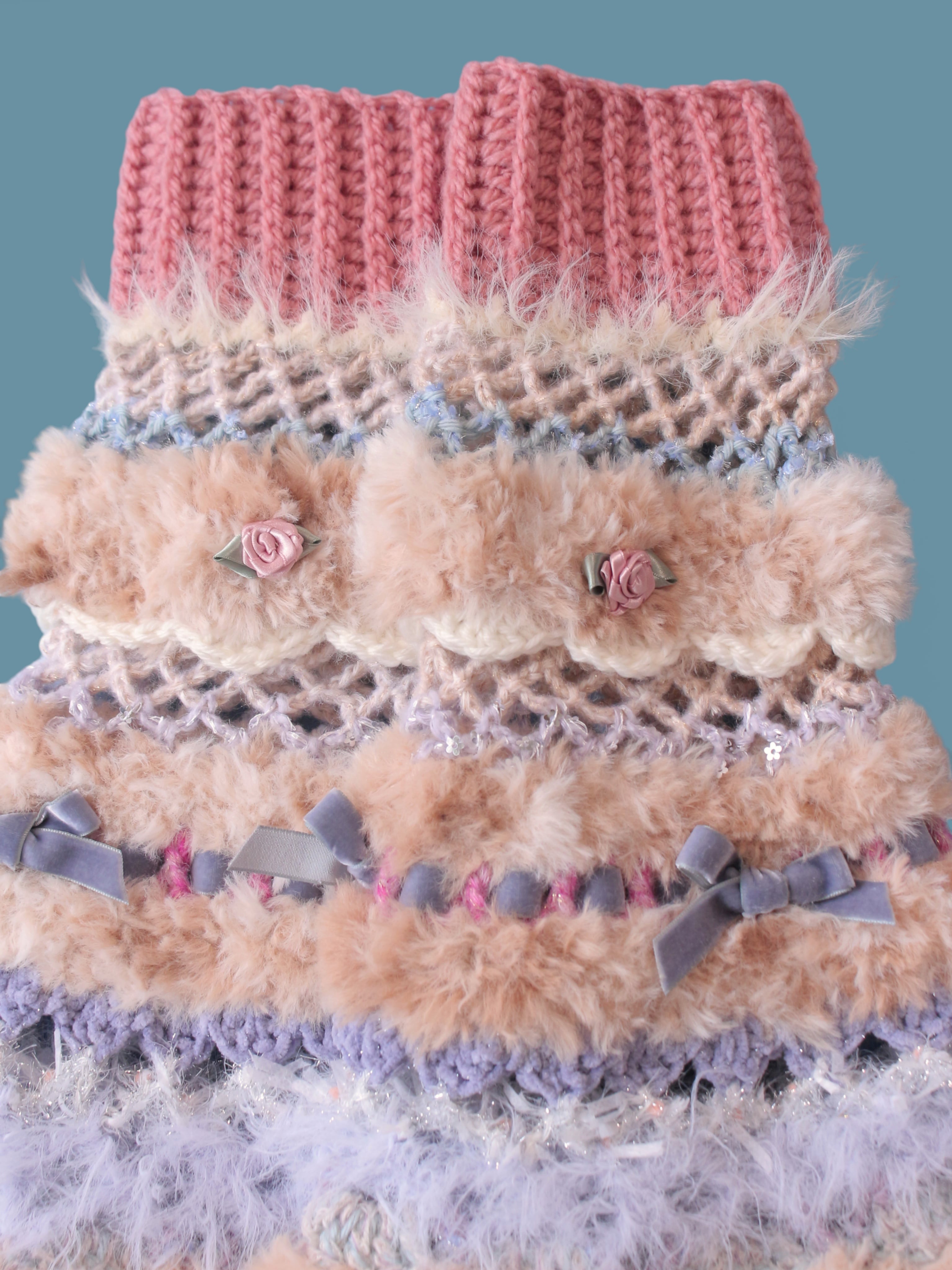 こちらはラテ色のファーにさまざまな色の毛糸を組み合わせたカラーです。