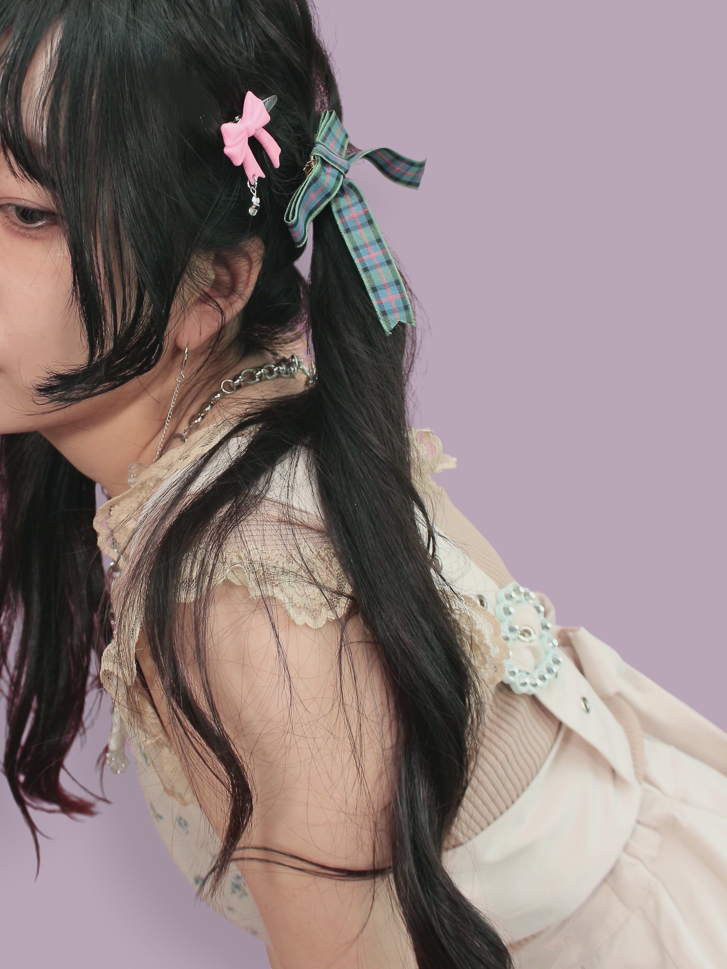 "GIFTED"というテーマから連想して、ふかふかのクッションをギフトシールにしたようなデザインのヘアピンと、一緒に組み合わせられて使いやすい小さなリボンとセットにしました。