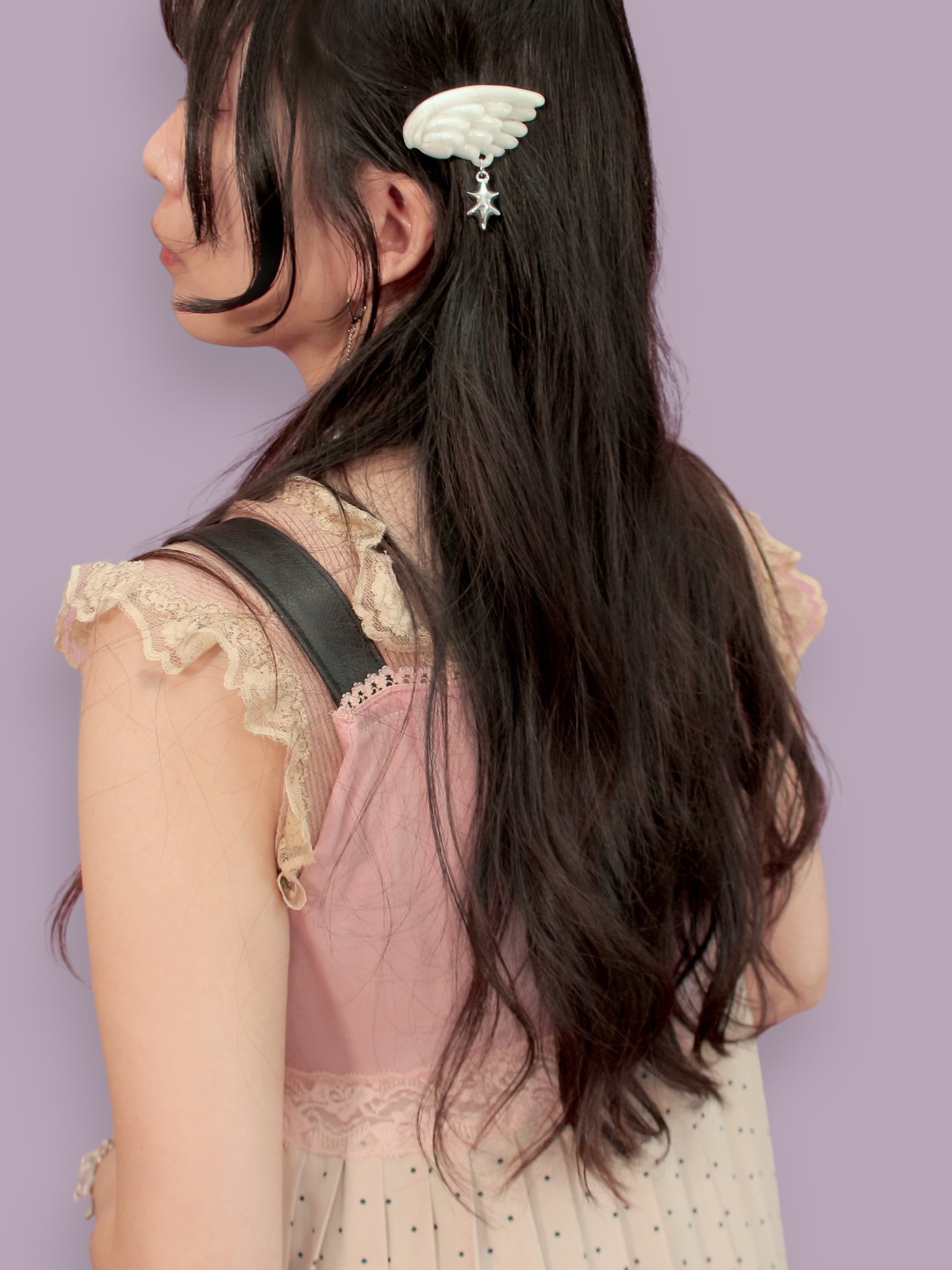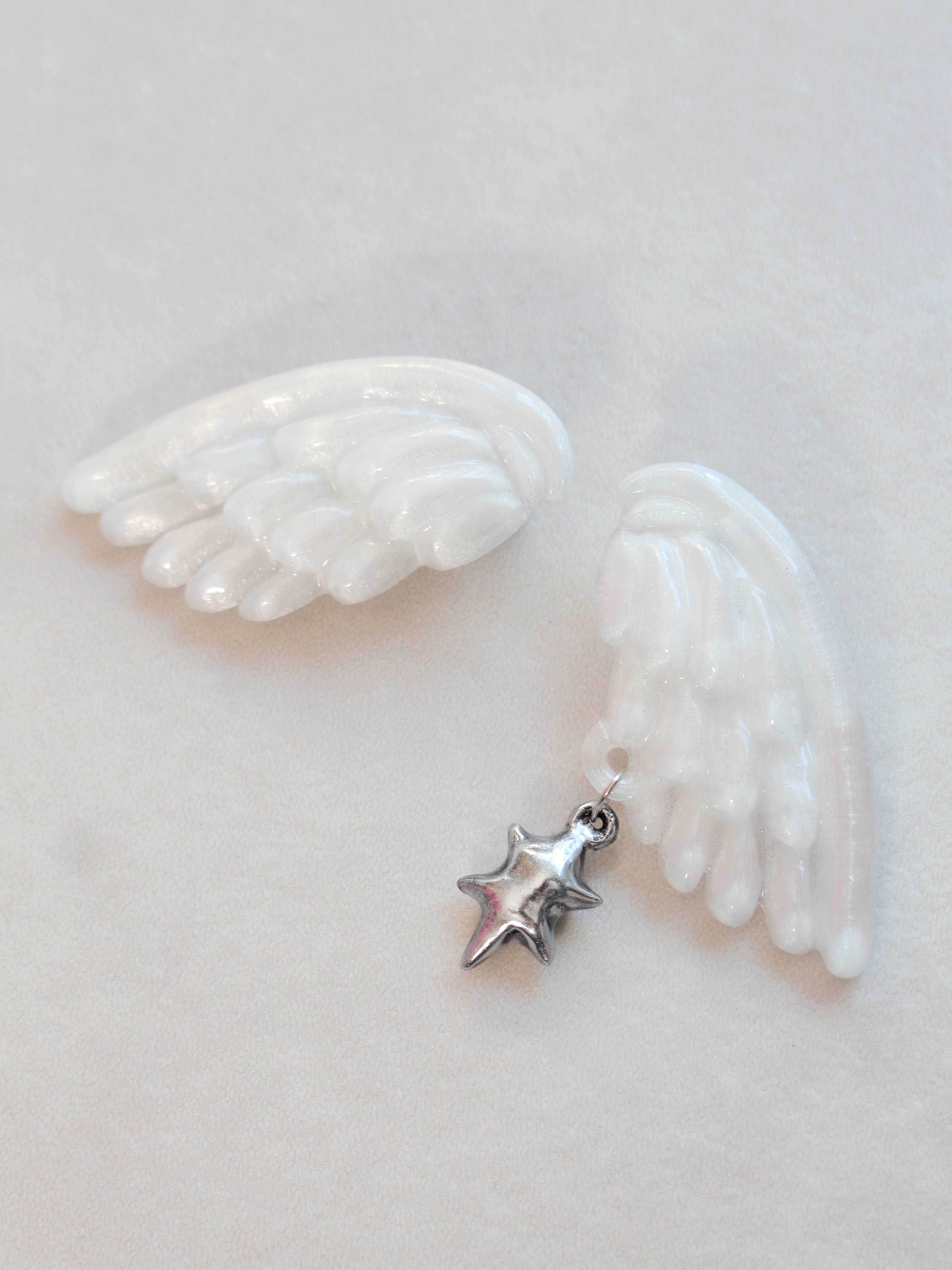 半透明な翼に銀色の星が揺れるヘアクリップの2個セットです。