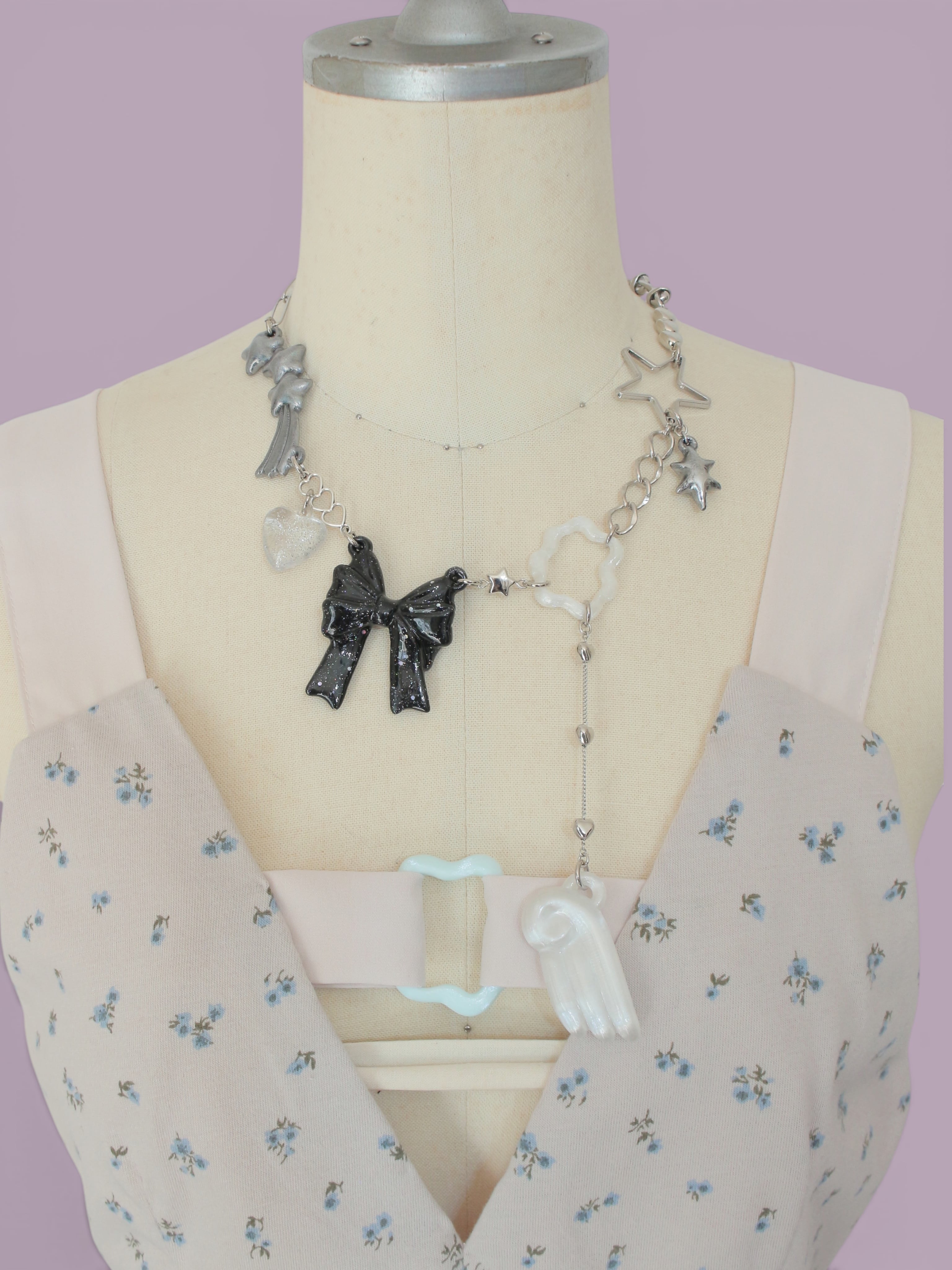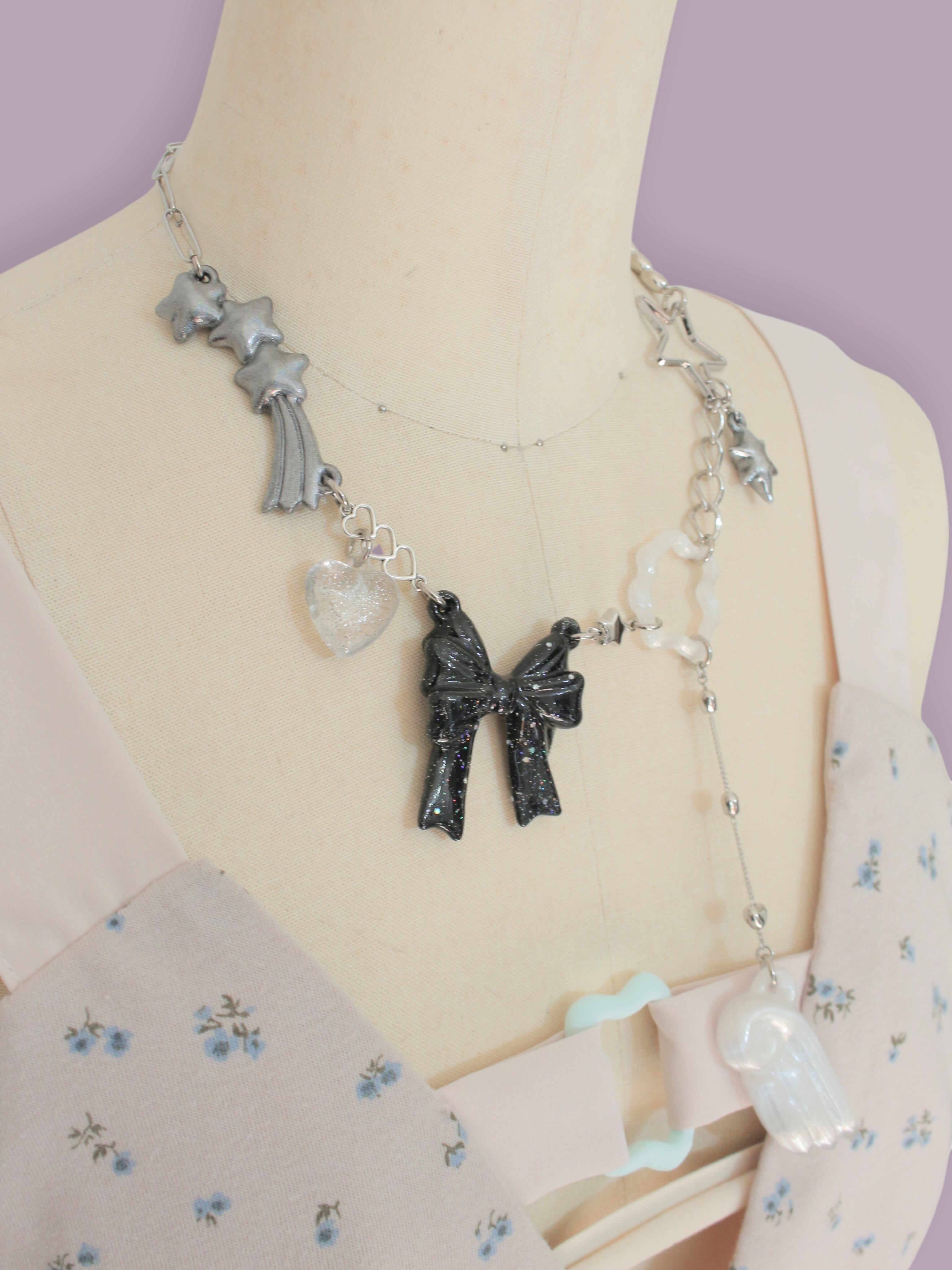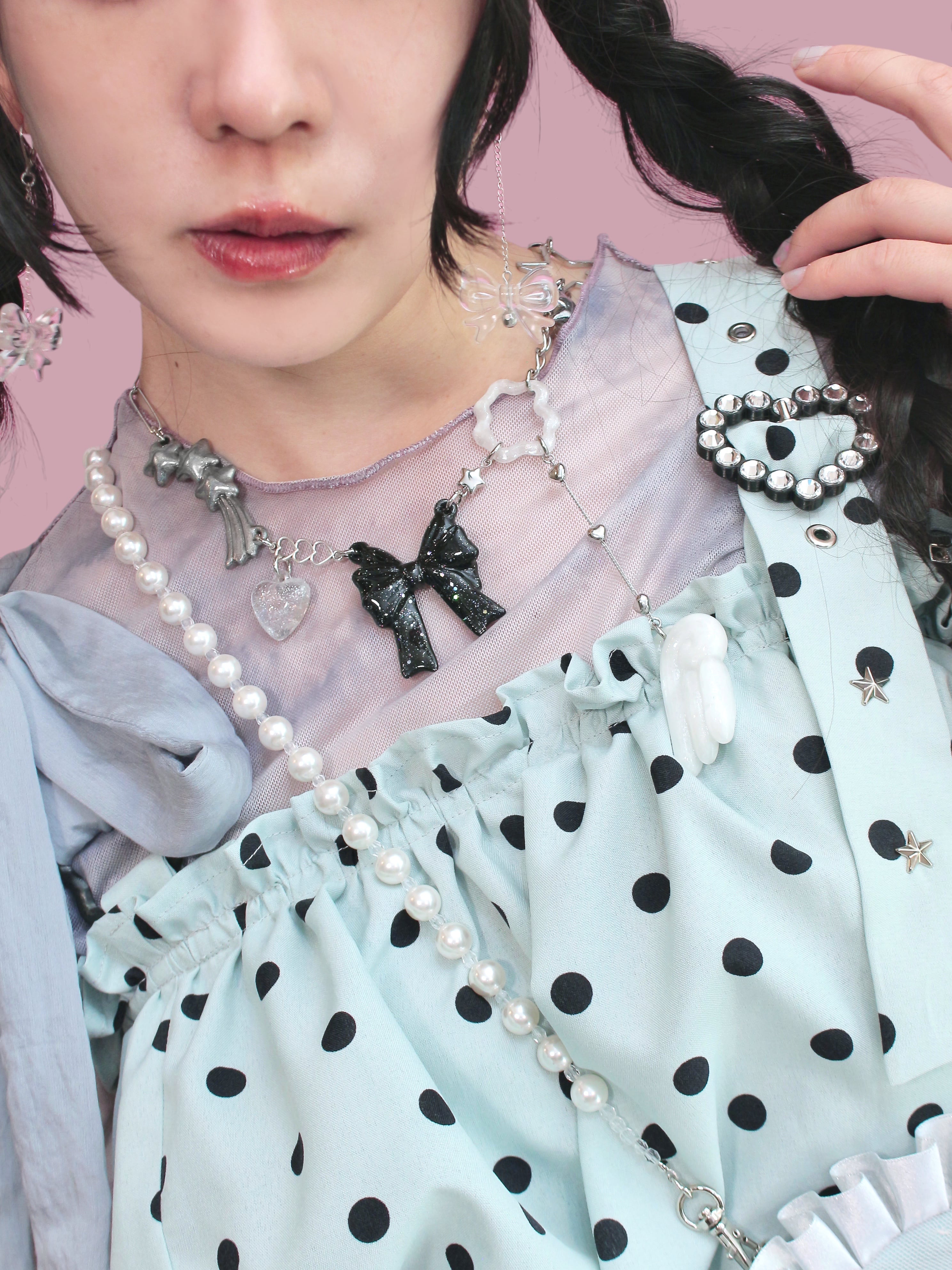 こちらはいろんなお洋服に合わせやすい、ラメを乗せた黒やシルバー、半透明な白の組み合わせ。