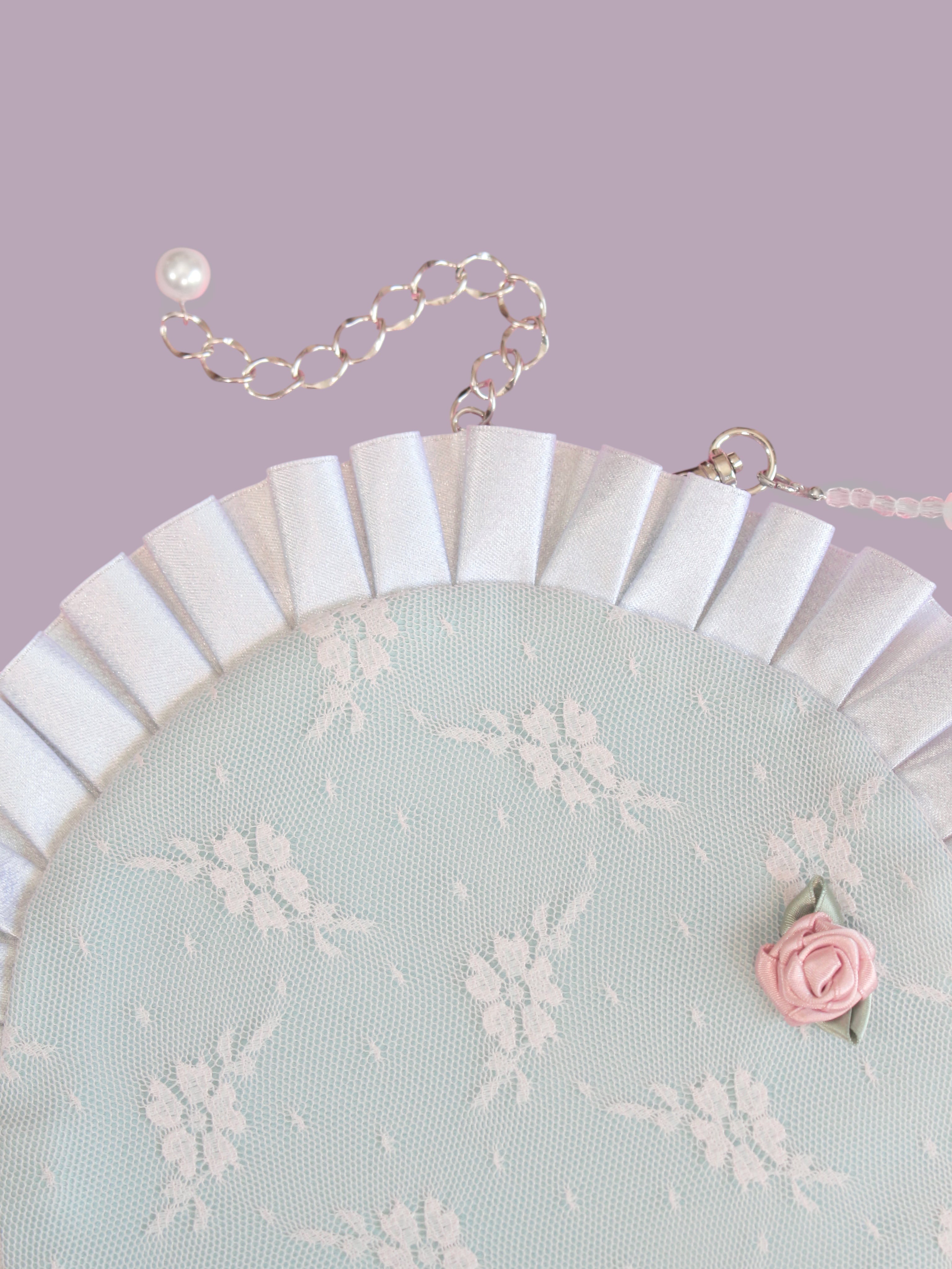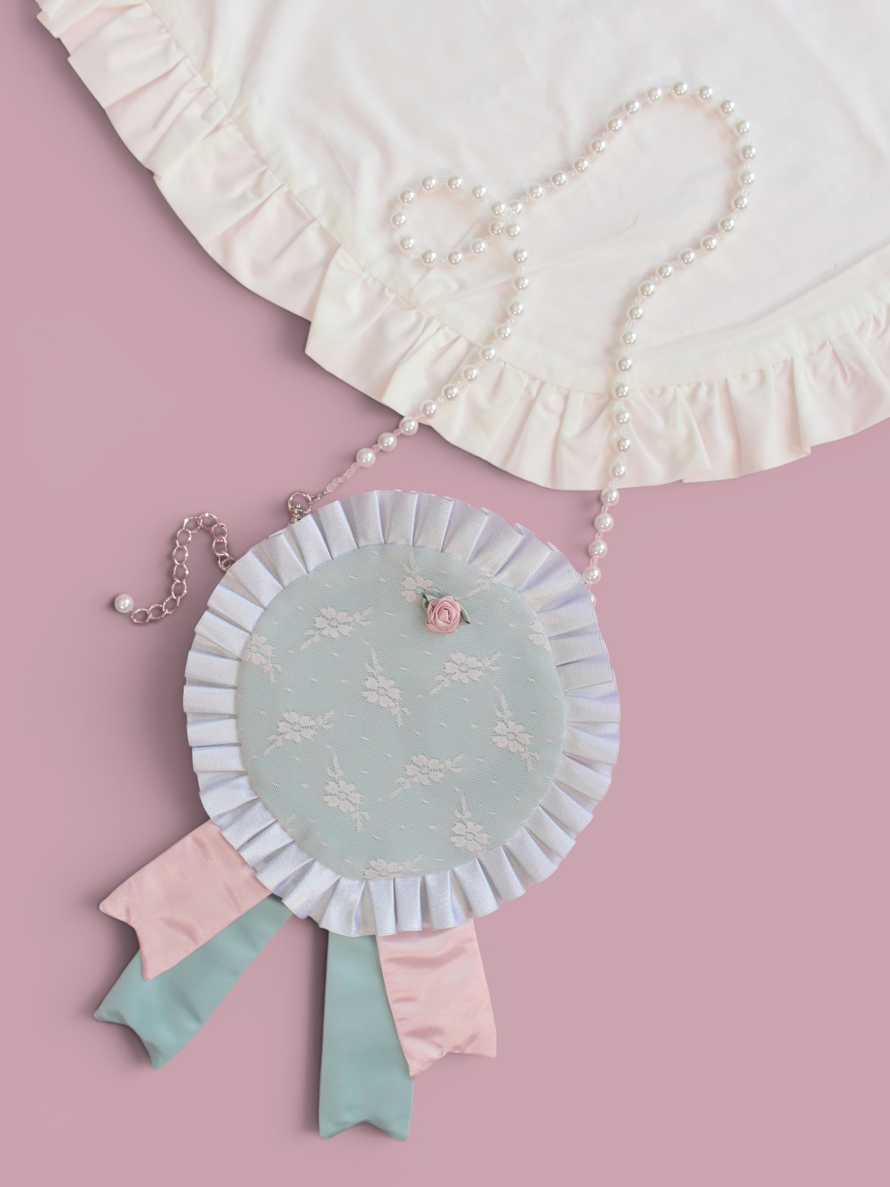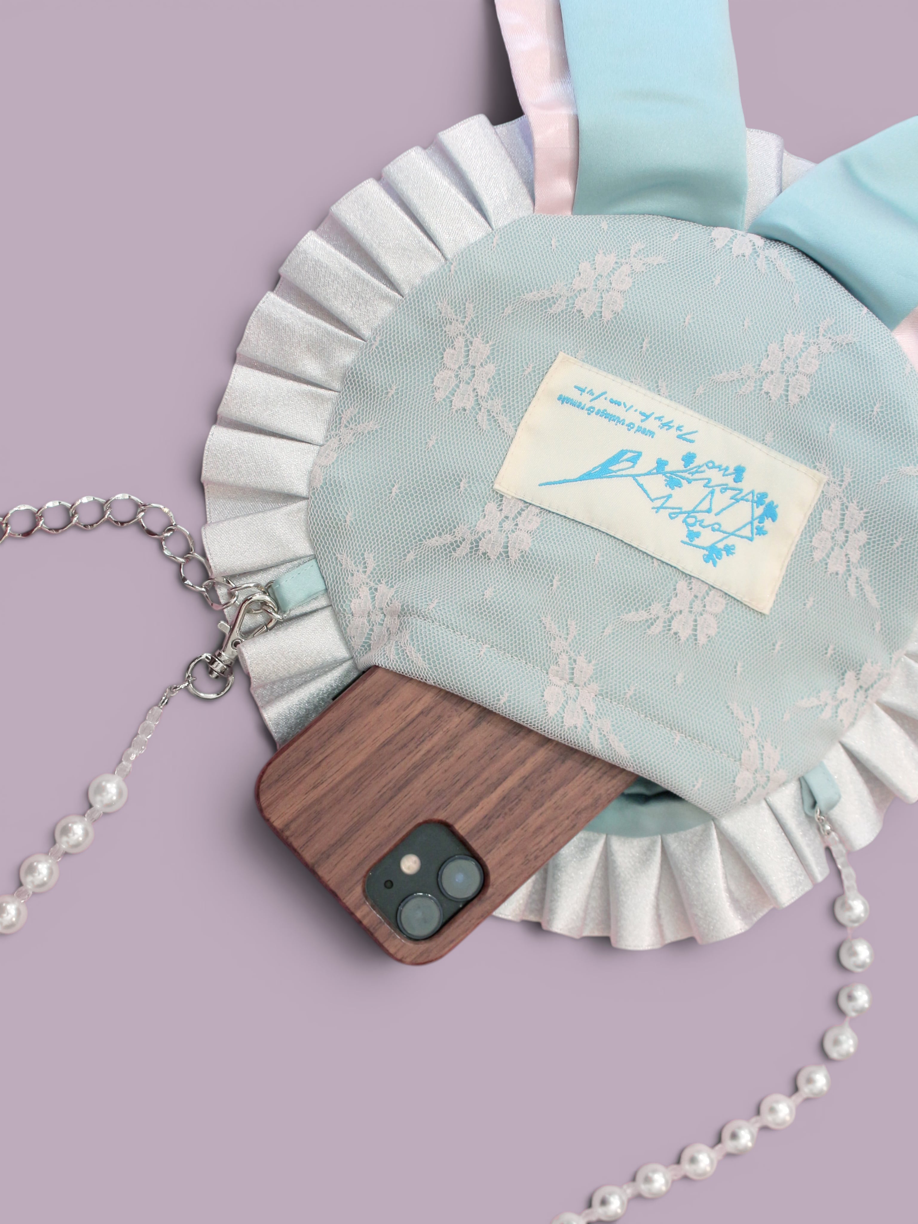 ロゼッタをモチーフにしたスマホポシェットです。こちらはパステルカラーの組み合わせです。