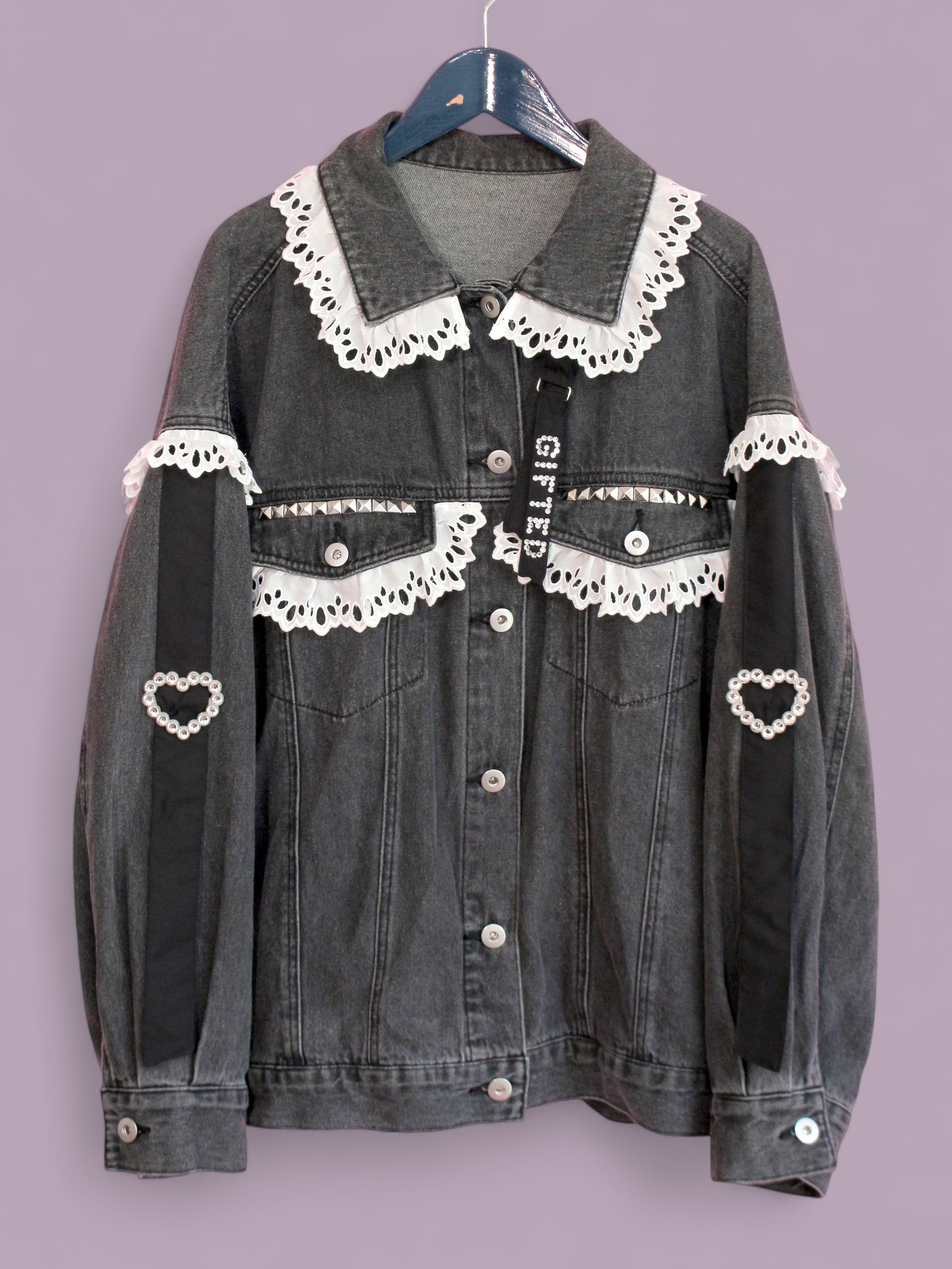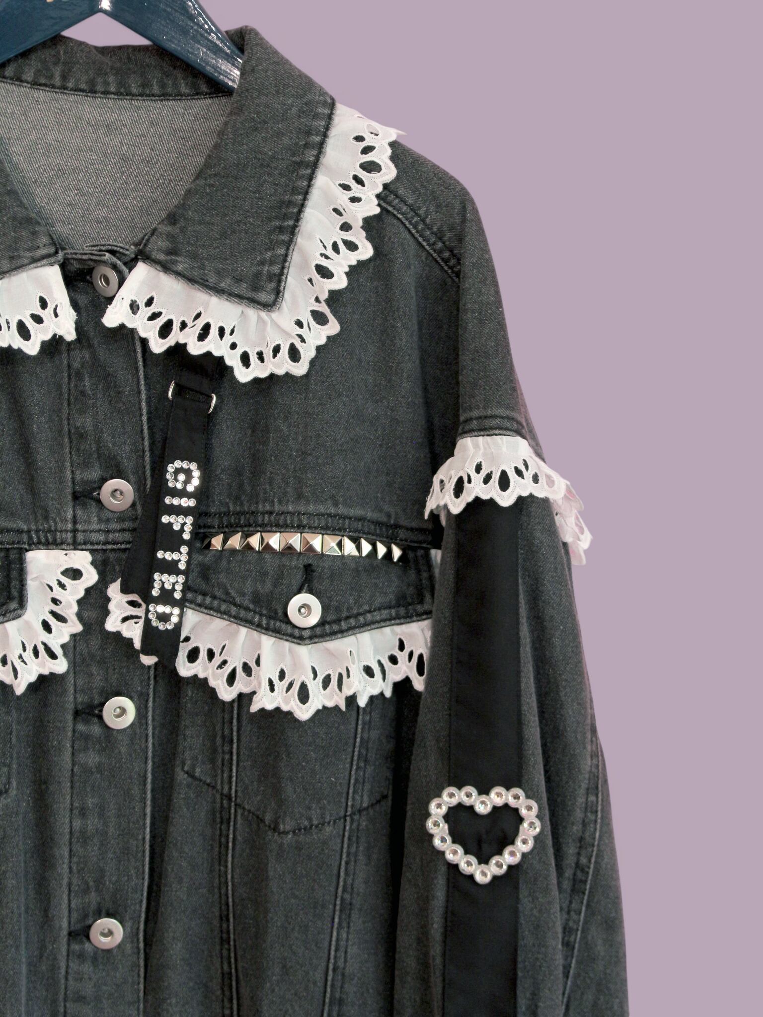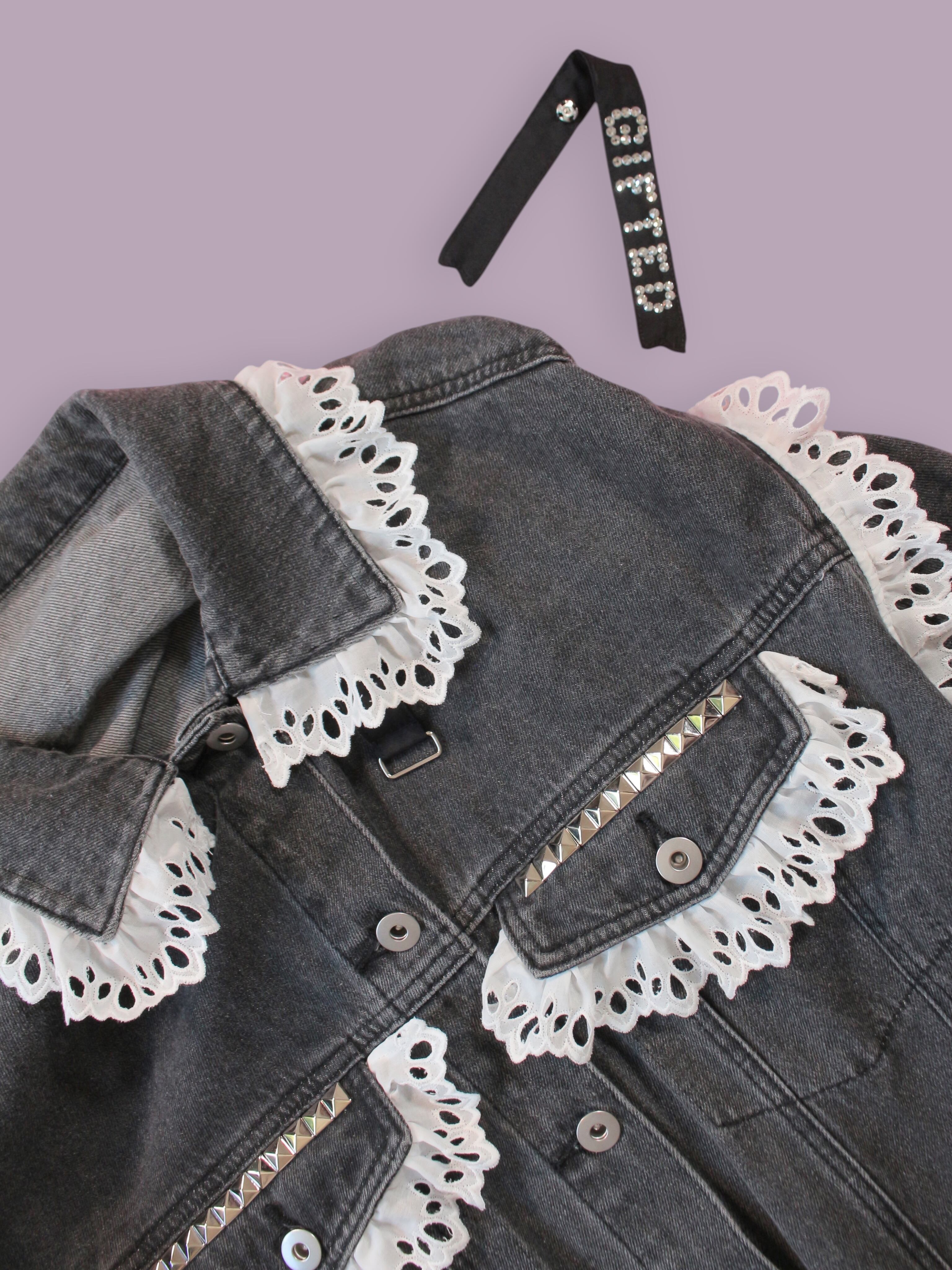 オリジナルパーツやさまざまなデコパーツを使用してリメイクしたデニムジャケットです。