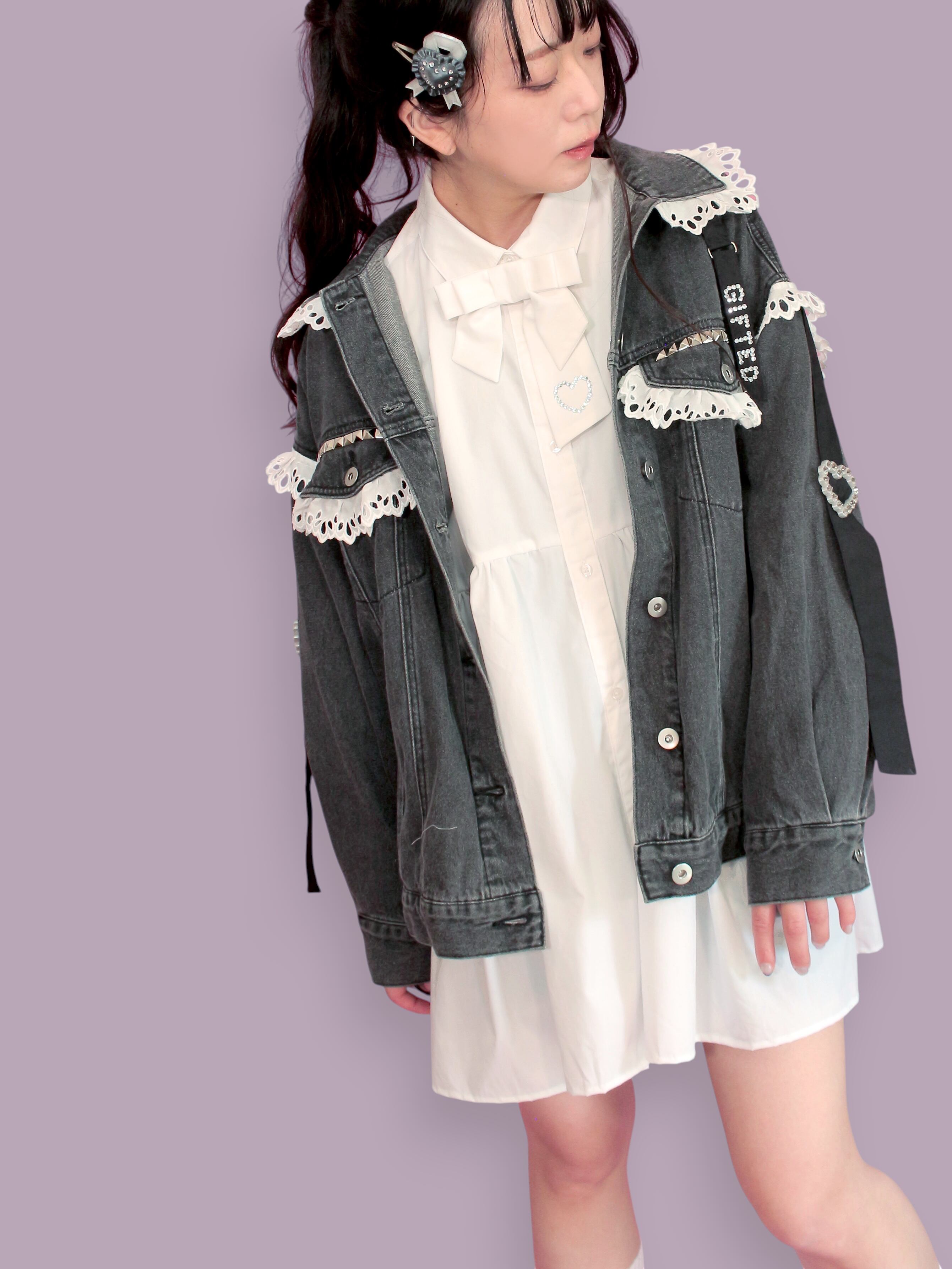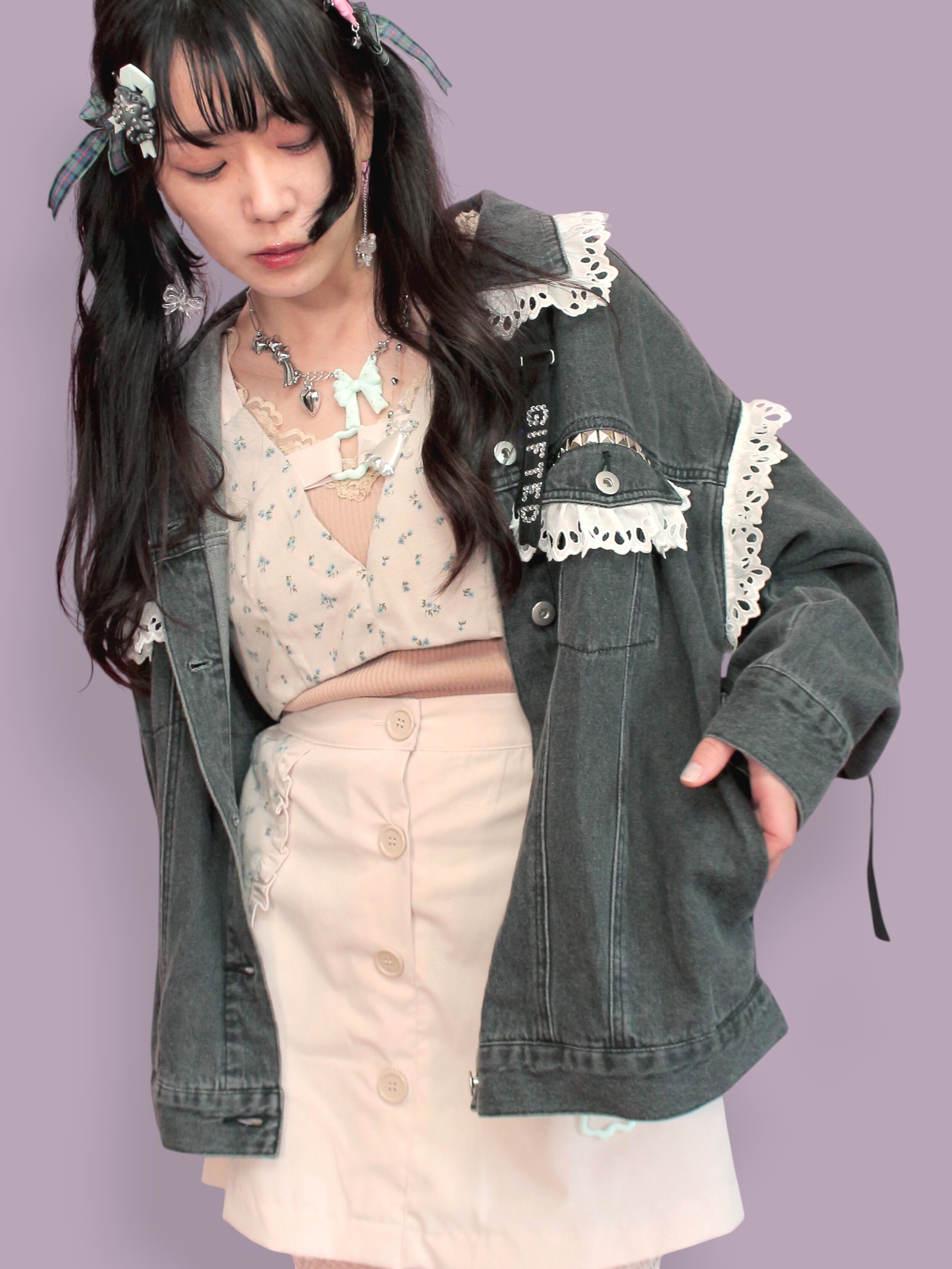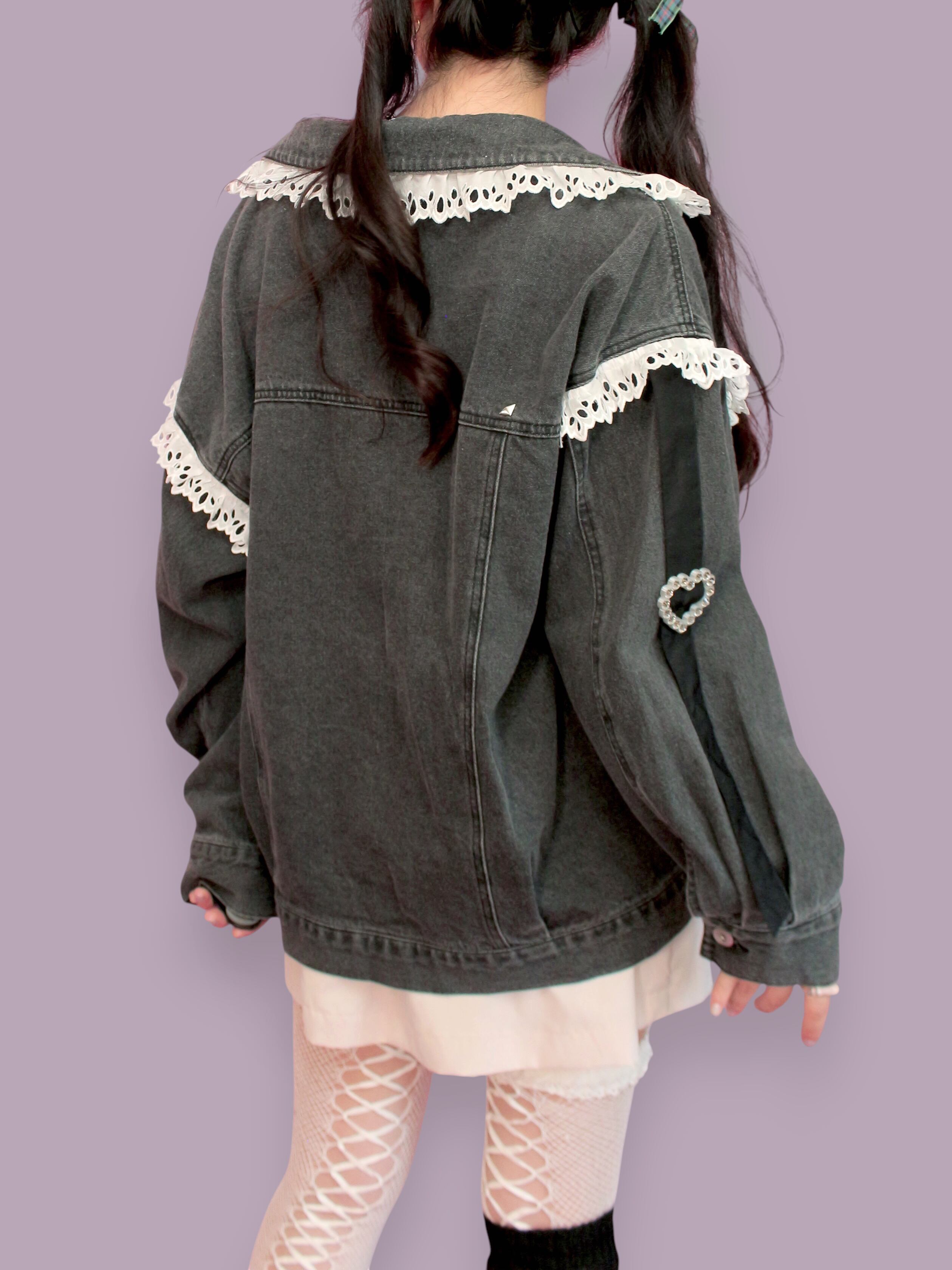 オリジナルパーツやさまざまなデコパーツを使用してリメイクしたデニムジャケットです。
